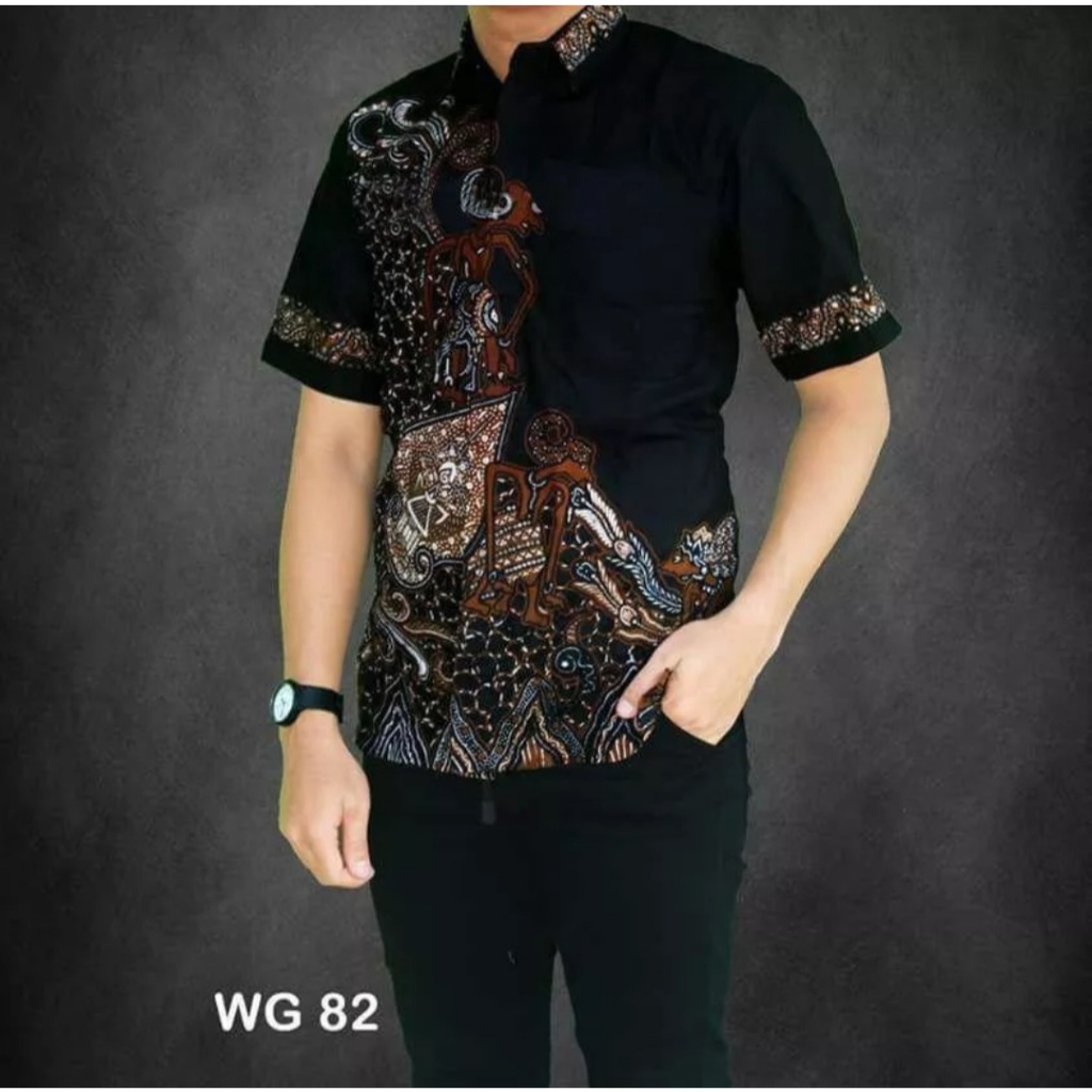 tey-17 Batik Pria ASJ SA HRB026 Kenongo Kemeja Tosca Pendek Pekalongan Padi M L Xl Sogan Tulis ::