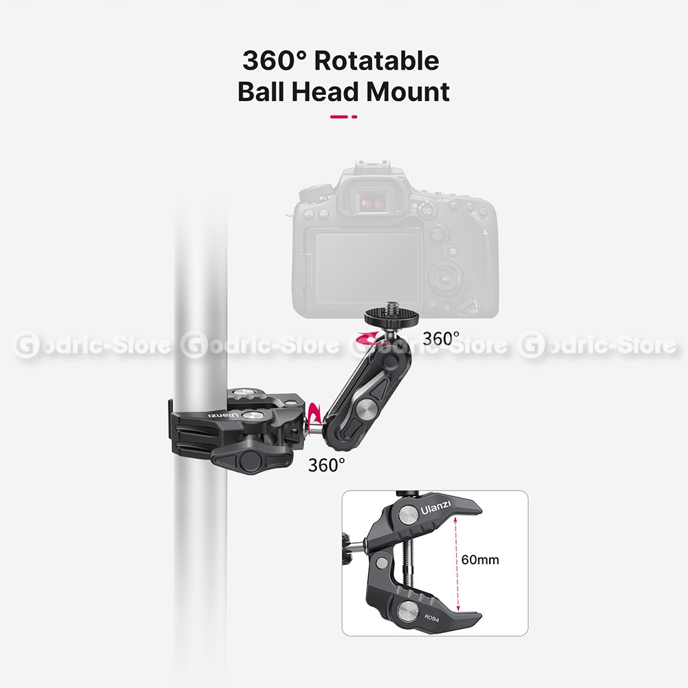 ULANZI UURIG R094 Metal Clamp with 360 Rotate Ball Head & Magic Arm for Mount Camera / LED / Mic / Light / Monitor