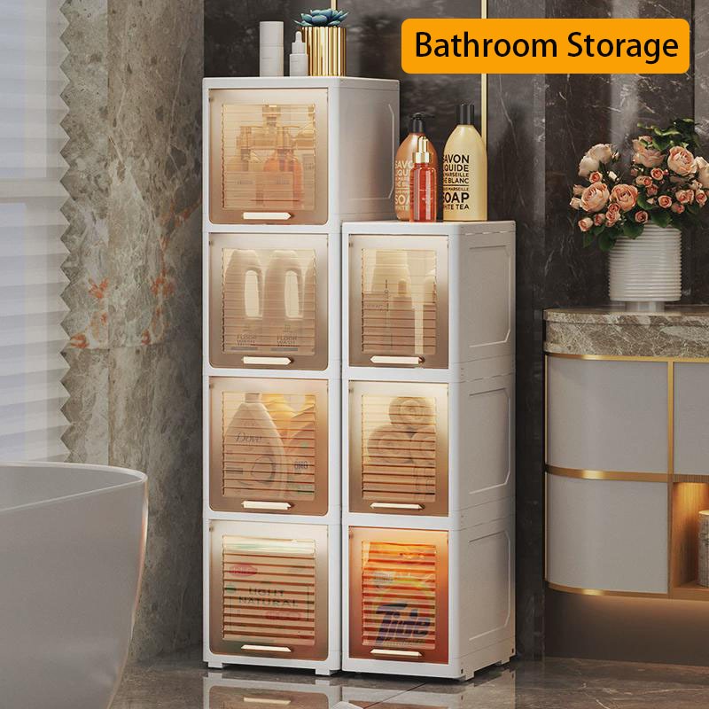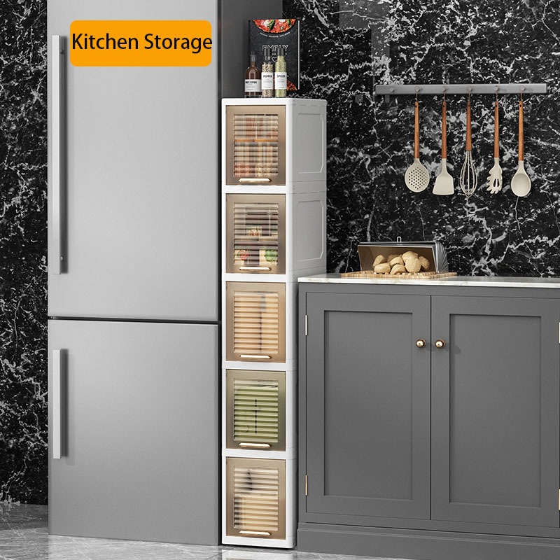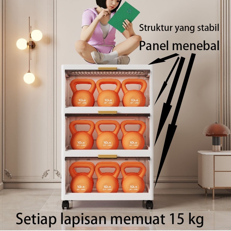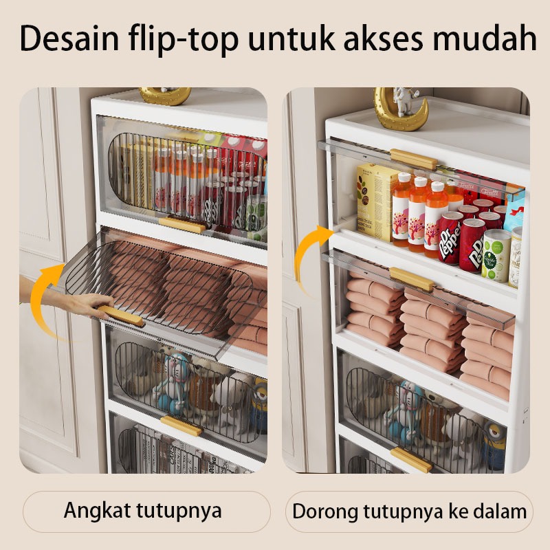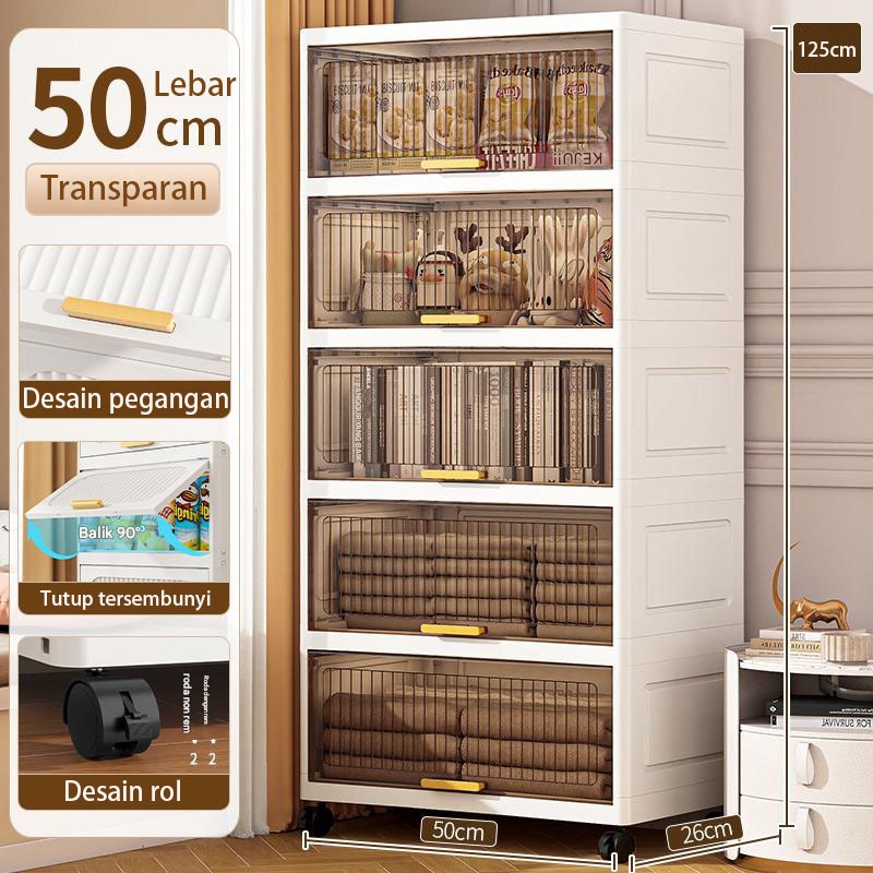 Yahada Lemari Plastik 2-5 Susun Ditumpuk, Lemari Plastik Transparan penyimpanan flip-top, Loker Serbaguna ada Roda