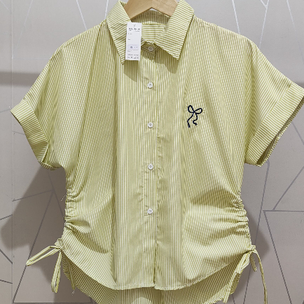 SANIK | Stripe Shirt Kemeja Katun Salur Wanita - Atasan Motif Salur Bordir Pita