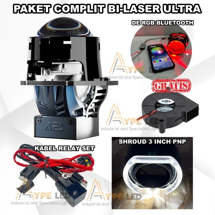 Bi-Laser Projector AES Turbo Biled 3 inch Ultracooler Tir Technology 75 WATT Paket Complit Bi-Laser AES