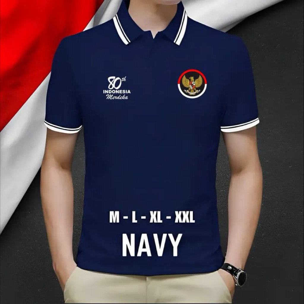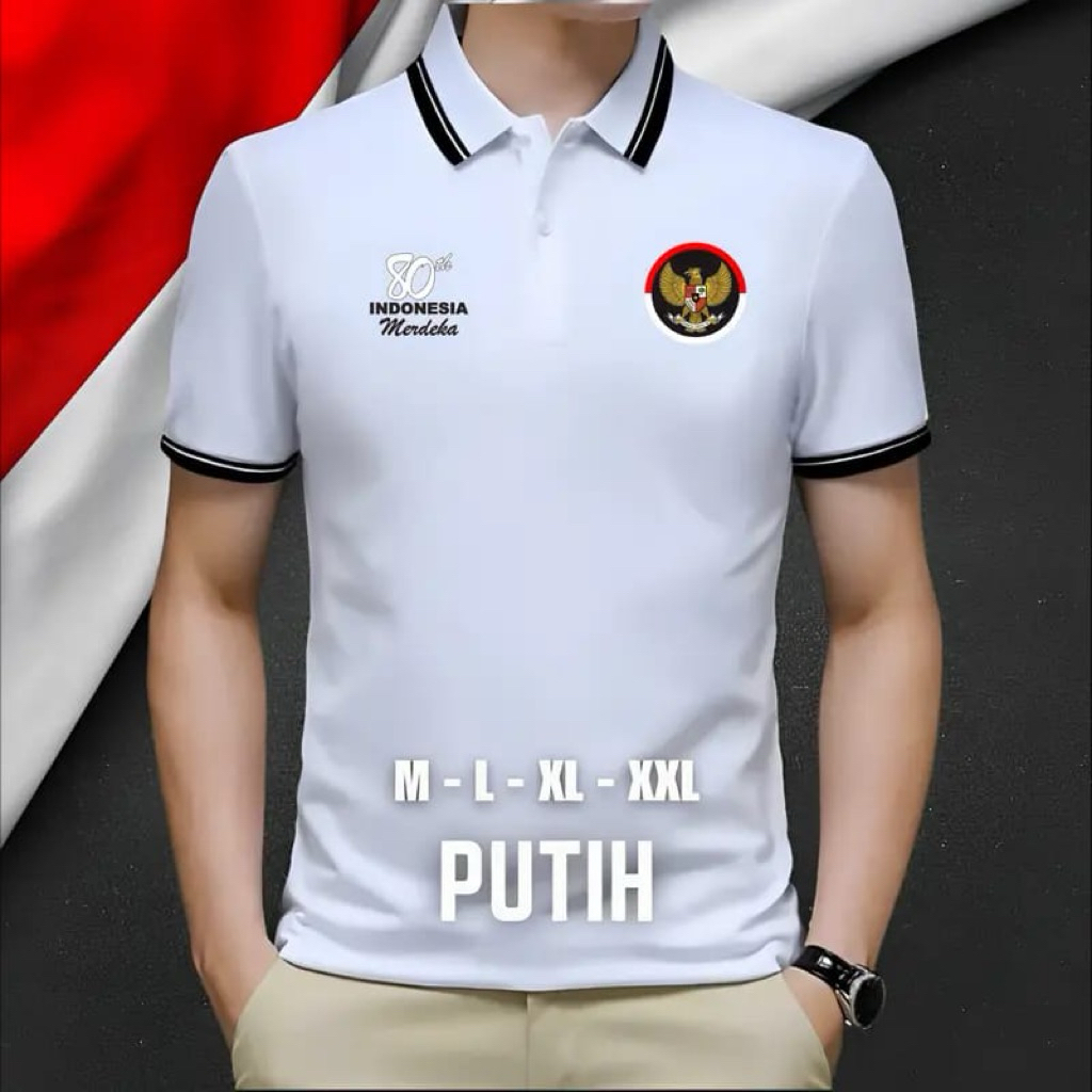 T-shirt Kaos Polo Kemerdekaan RI Ke 80 TH Baju Kerah Pria Wanita Distro