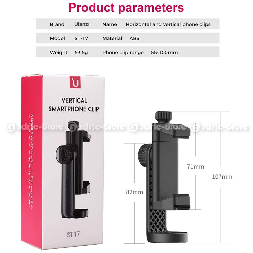 ULANZI ST-17 Holder Vlog HP Clip Aluminium Alloy 360 Tripod Mount Smartphone with Cold Shoe