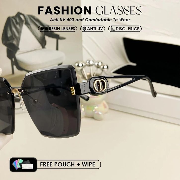 KACAMATA HITAM WANITA TITANIUM UV TANPA BINGKAI IMPOR FASHION TRENDI PRODUK BARU FREE DOMPET DAN LAP STYLISH