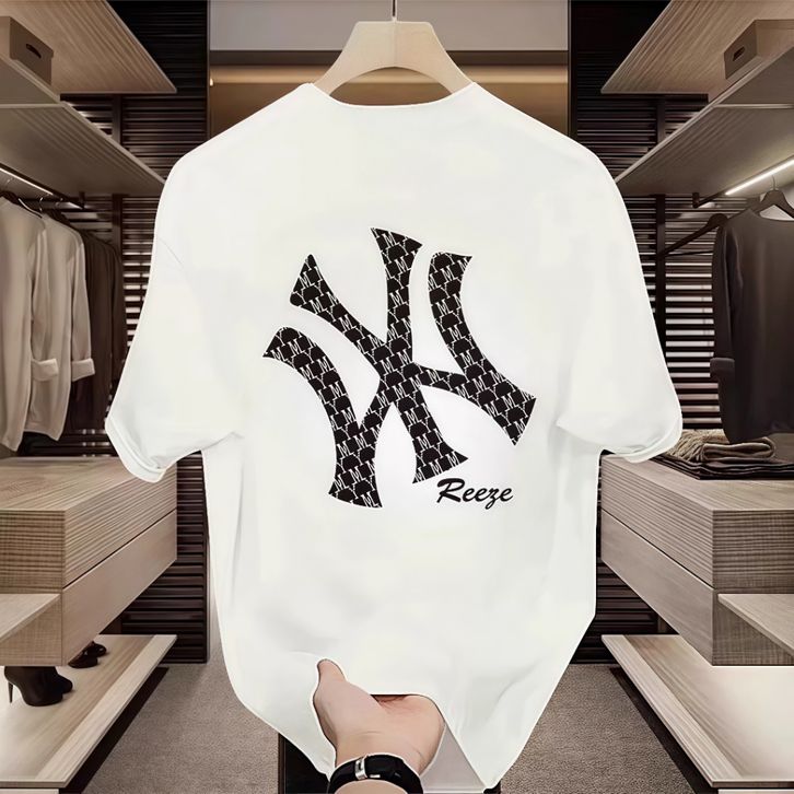 Kaos pendek pria dan wanita yang lebar dengan cetakan sederhana gaya Amerika Serikat.