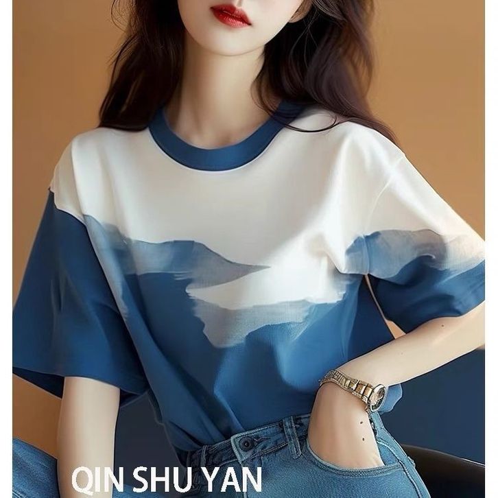 Color Block Women's Short Sleeve T-Shirt/New Loose Plus Size Fashion Top