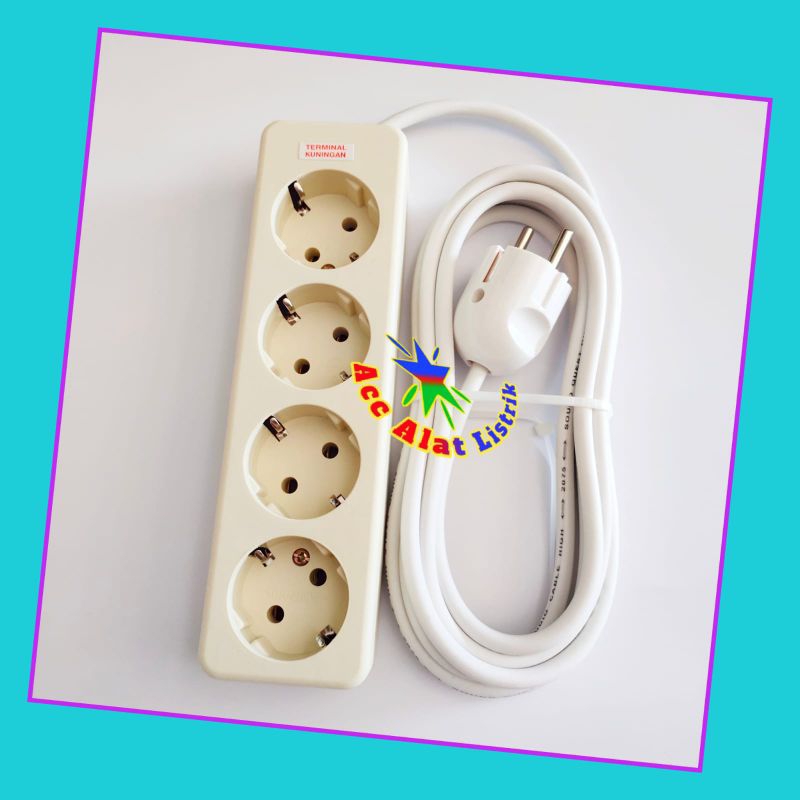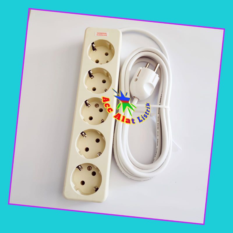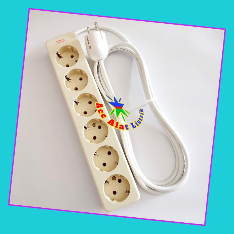 Stop Kontak Uticon 1 2 3 4 5 6 Lubang Terminal Kuningan / Colokan Listrik + Kabel 2 Meter s/d 10 Meter Siap Pakai