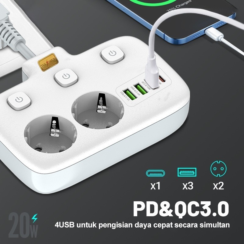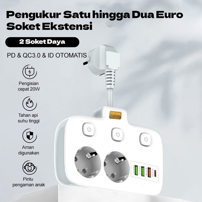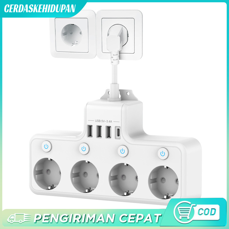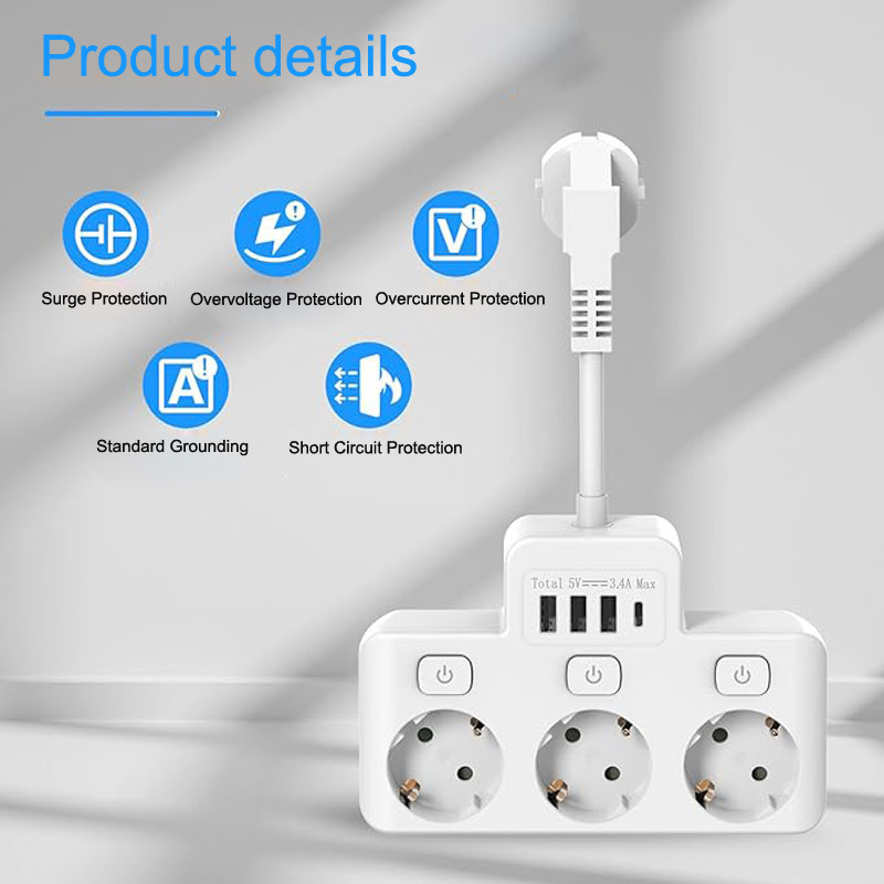 2500W European Plug Adapter with USB Ports Travel Use Plug Adapter Type-C Multipel Plug Stop Kontak Wall Socket Extender Adapter Dengan 6 in 1
