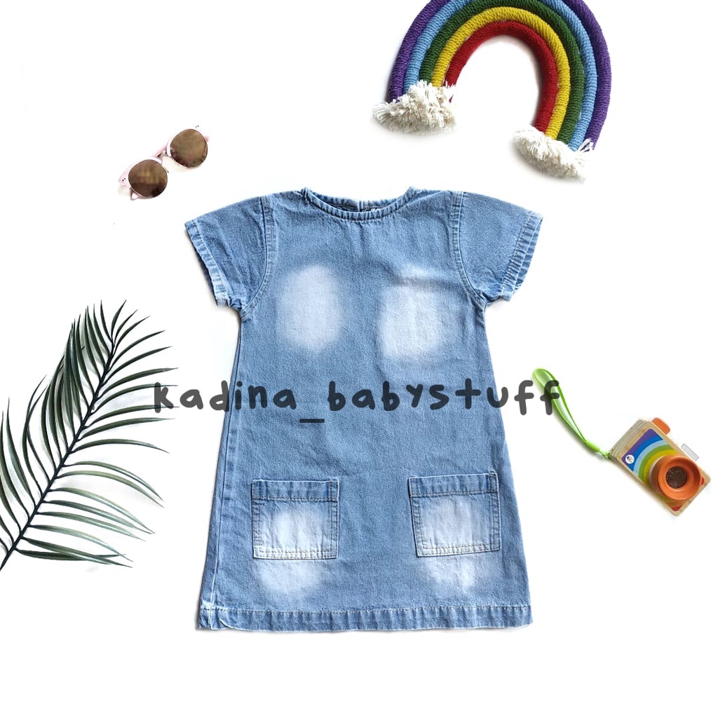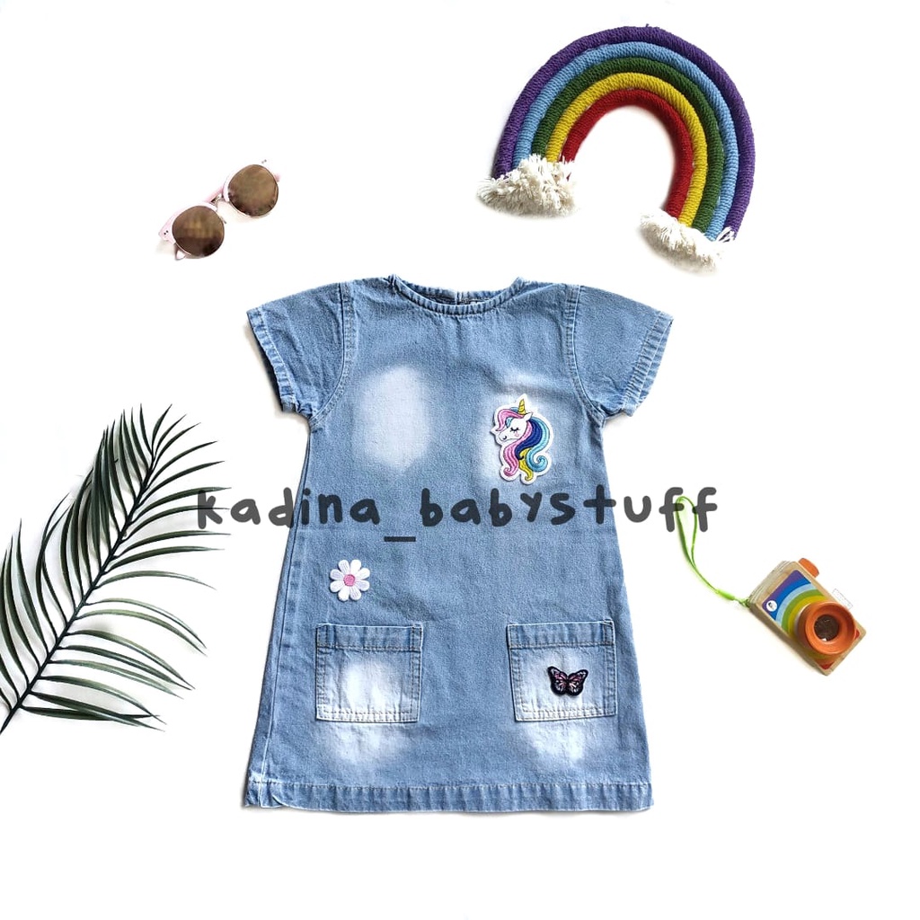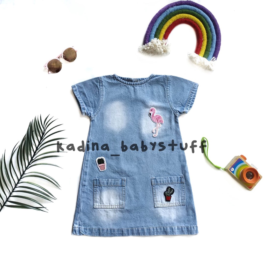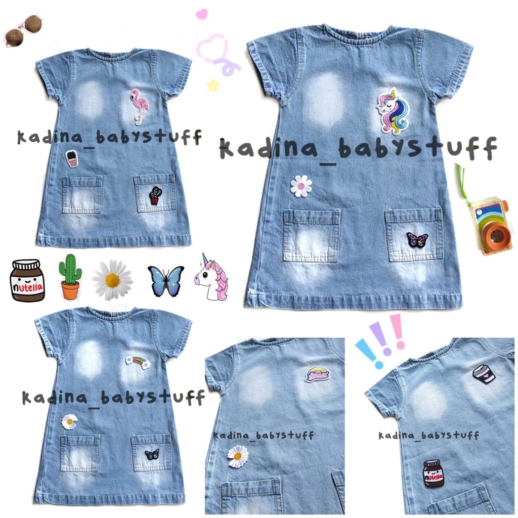 DRESS JEANS ANAK MOTIF FLAMINGO UNICORN BUTTERFLY / TUNIK JEANS ANAK PEREMPUAN / DRESS MOTIF BORDIR 1-5 tahun
