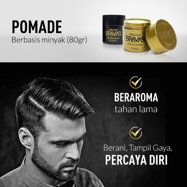 BRAVAS Pomade Brilliantine Minyak Rambut 80gr - Bravas Pomade Minyak Rambut Cowok