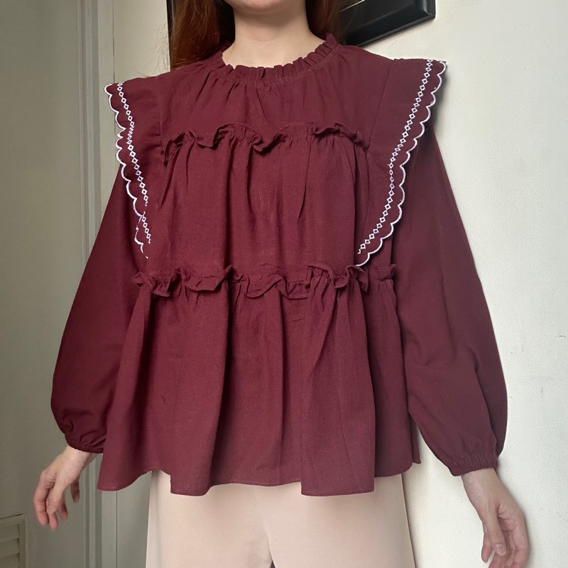 Blouse Wanita Korean Style Yewon Top – Atasan Cewek Modis Import Casual Kemeja Kekinian ALL SIZE
