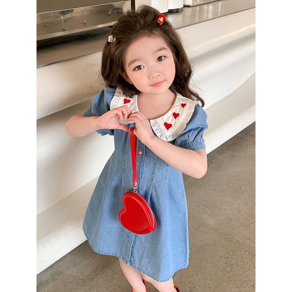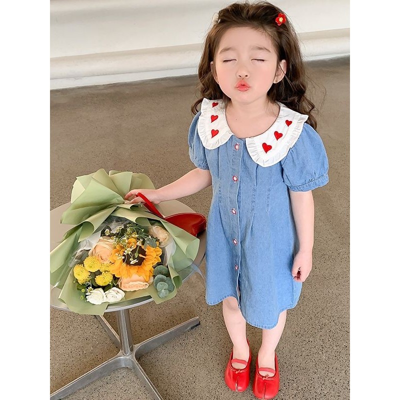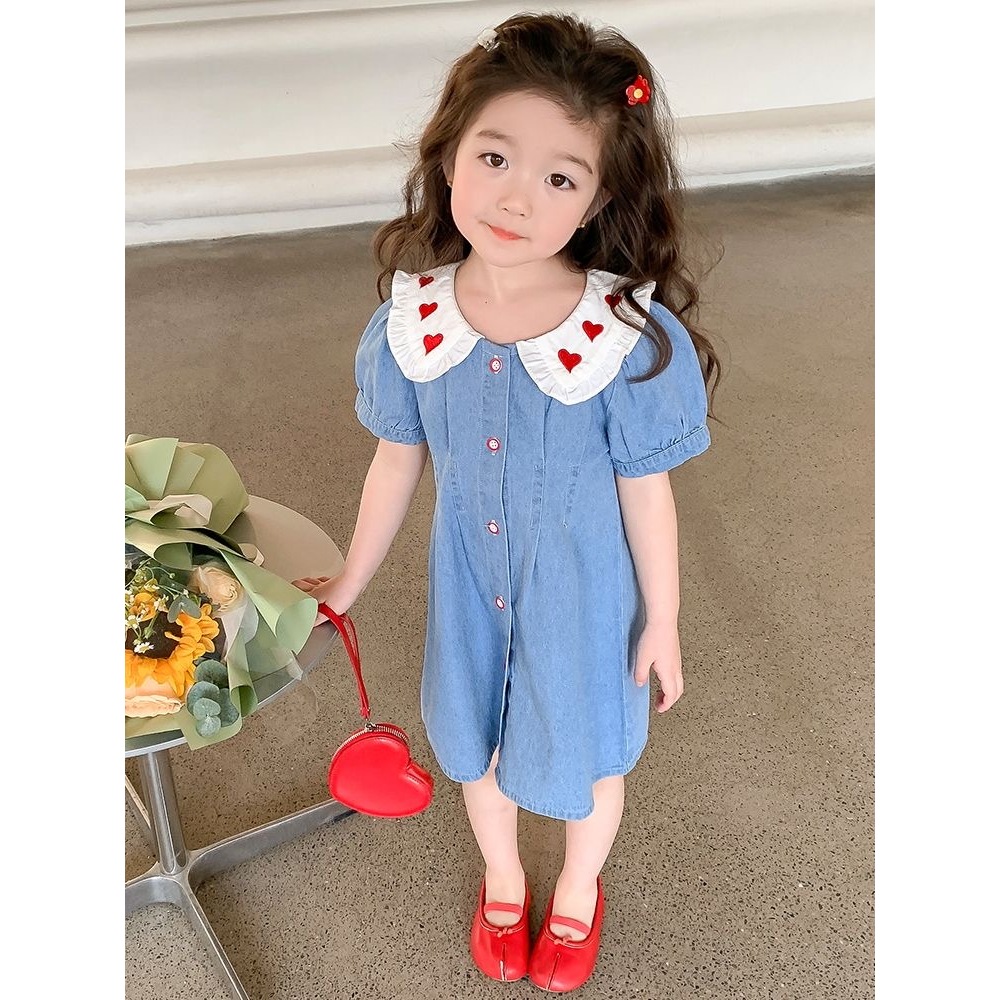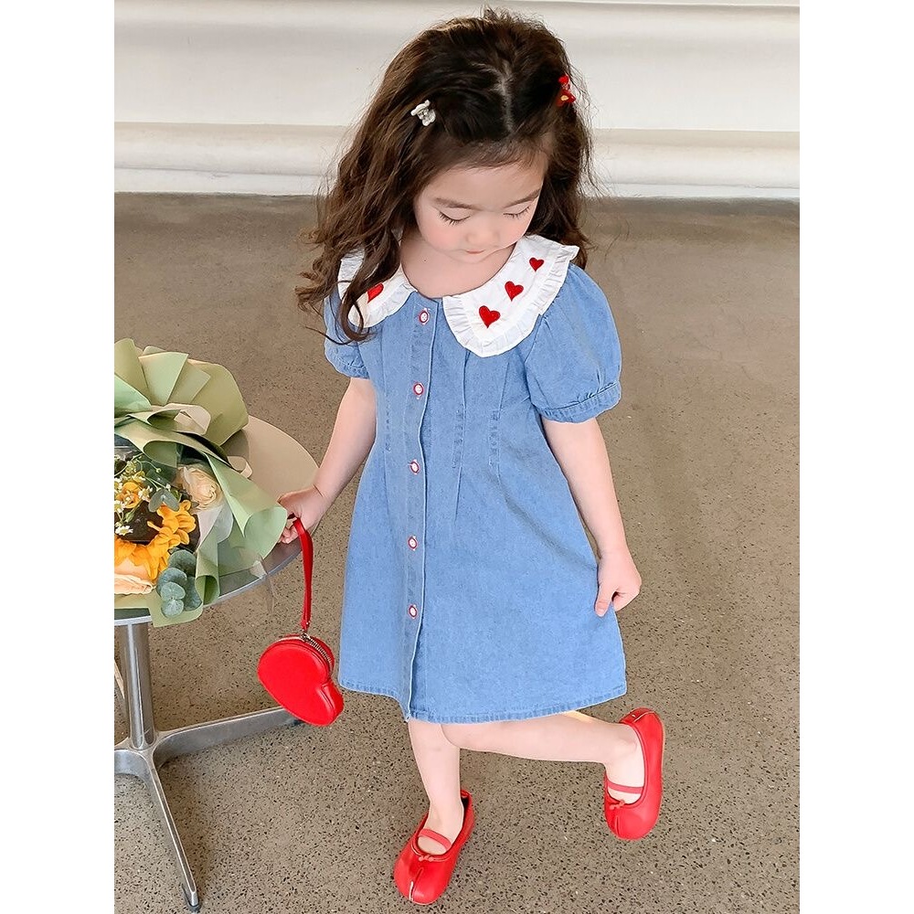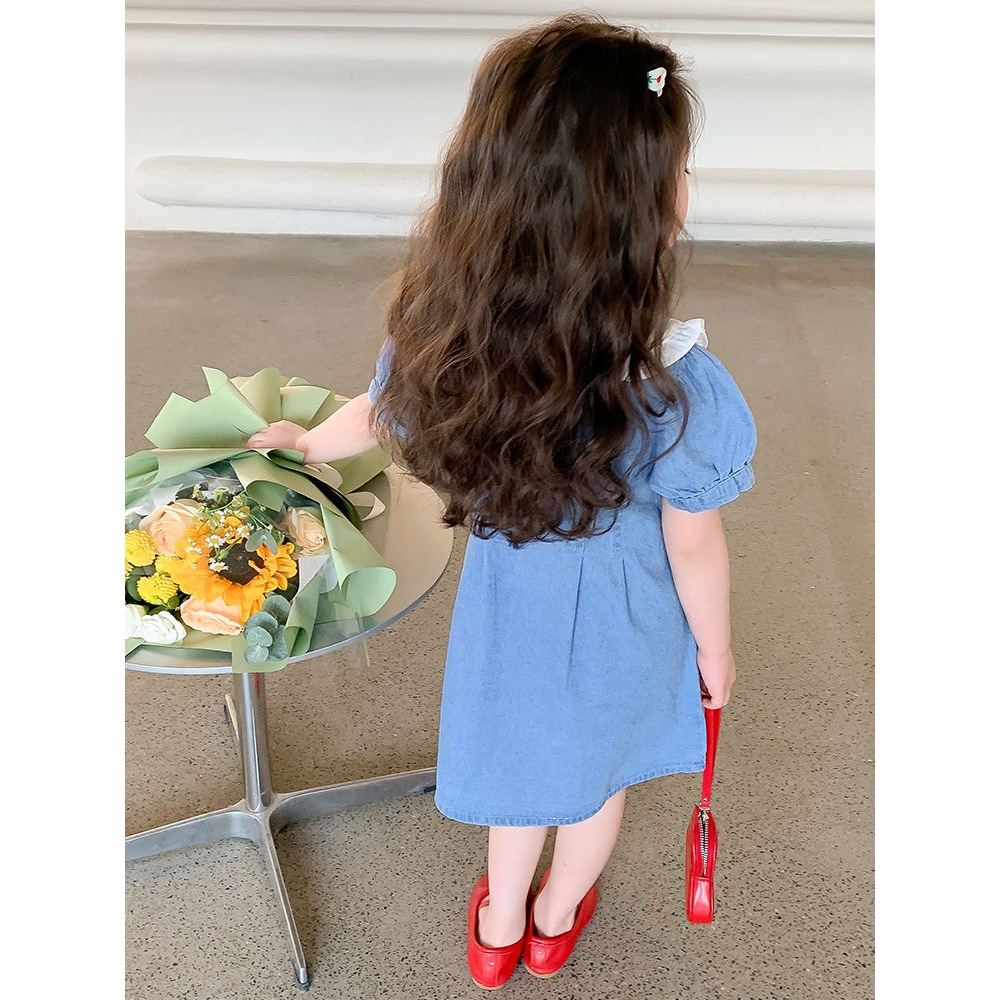 [PRINCESS KESLI] 1-11 Tahun Gaun Anak Perempuan 2024 Rok Denim Modis Biru Kelapak Rok Lengan Pendek