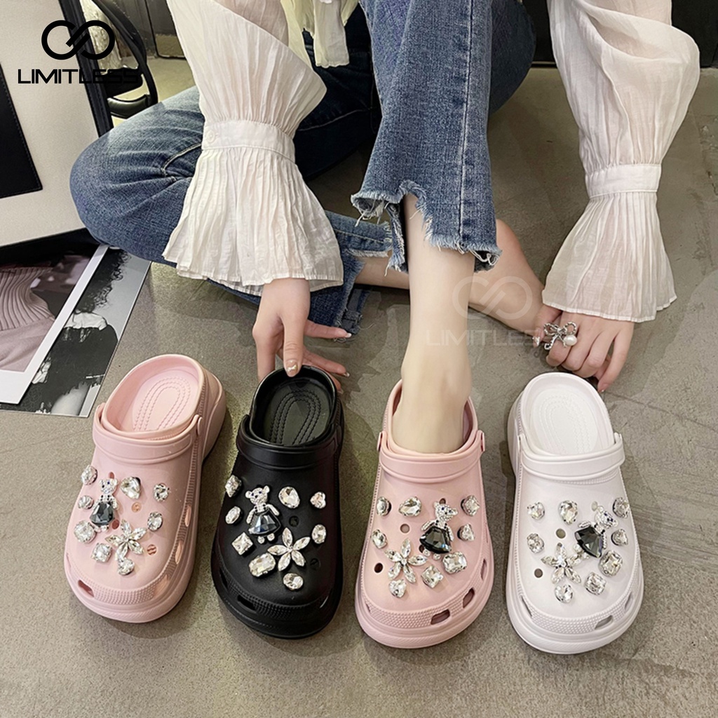 Sandal Fuji Dengan Permata Kasual Kekinian Sendal Slip On Cewek Terbaru 2025 Lentur Anti Licin