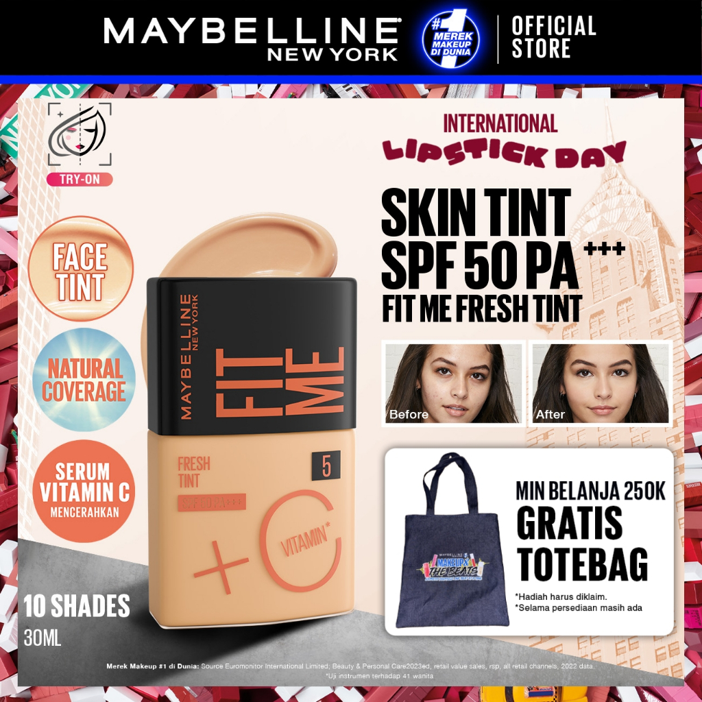 MAYBELLINE OFFICIAL Fit Me Fresh Tint 3 IN 1 30ml Skin Tint Foundation Tinted Sunscreen SPF 50 PA+++ Vitamin C Serum