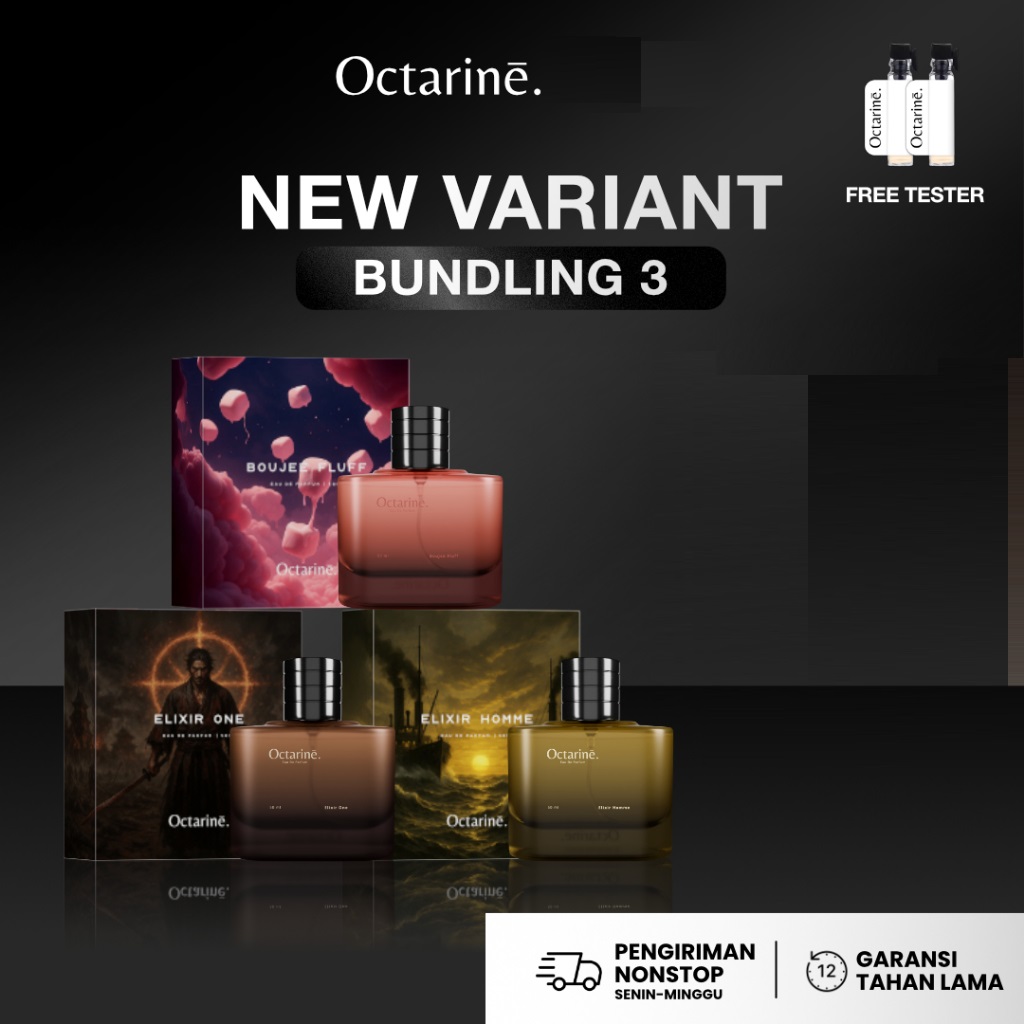 PARFUM OCTARINE BUNDLING 3 BOTOL PARFUM VARIAN BARU BOUJEE FLUFF,ELIXIR ONE,ELIXIR HOMME MINYAK WANGI UNISEX TAHAN LAMA