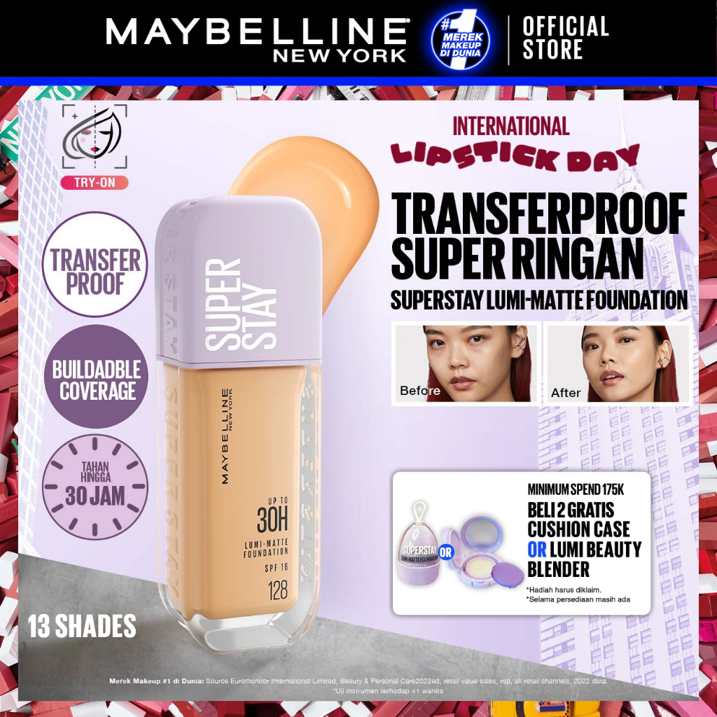 Maybelline Superstay Lumi Matte Liquid Foundation Tahan 30 Jam 35 mL – Buildable coverage transferproof ringan makeup ta