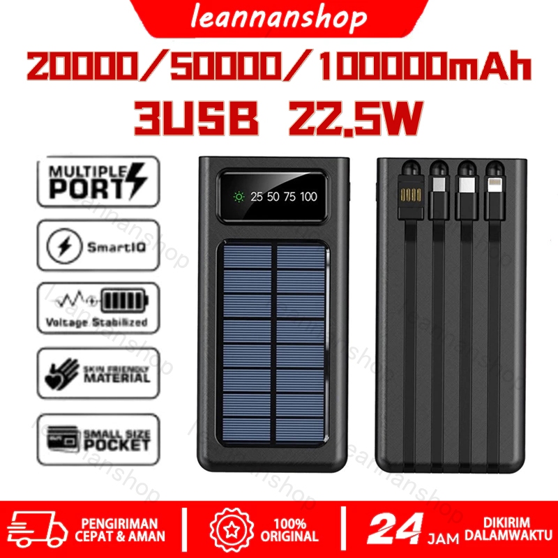 20000/50000/100000 mAh Powerbank Robot Power Bank Solar Cell Tenaga Surya Portable Led Indikator Multifungsi