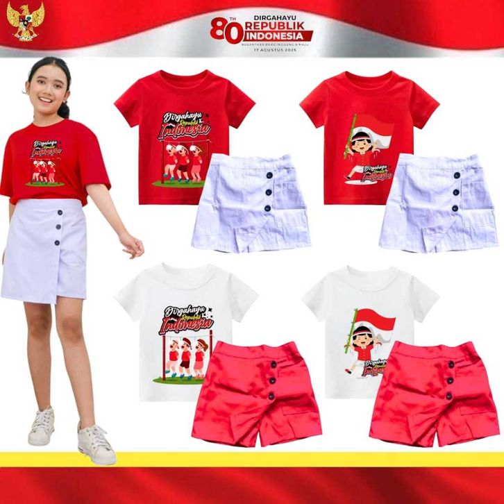 Baju setelan anak 17 Agustus SPESIAL KEMERDEKAAN Setelan anak perempuan rok celana dan kaos agustusan 1 13 tahun
