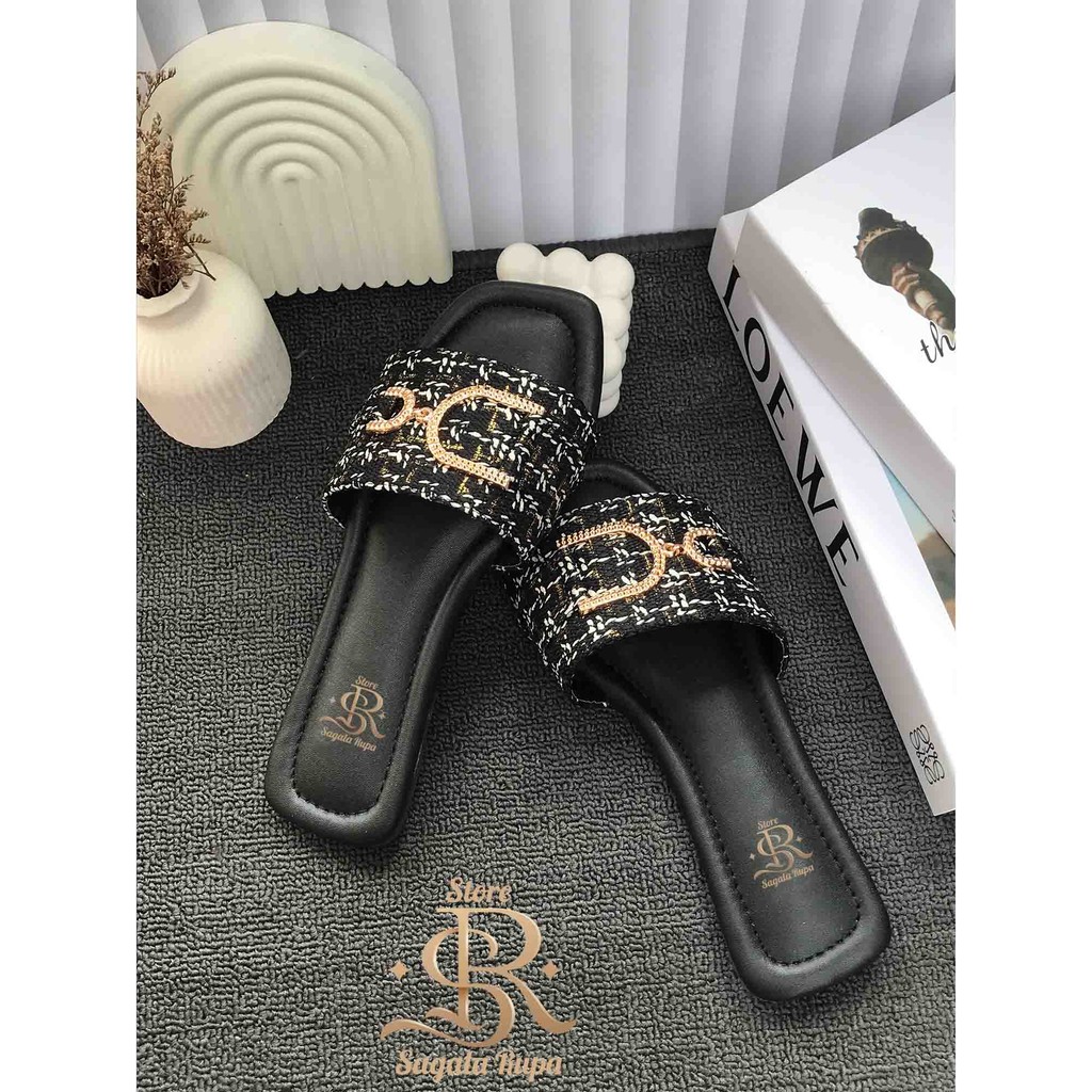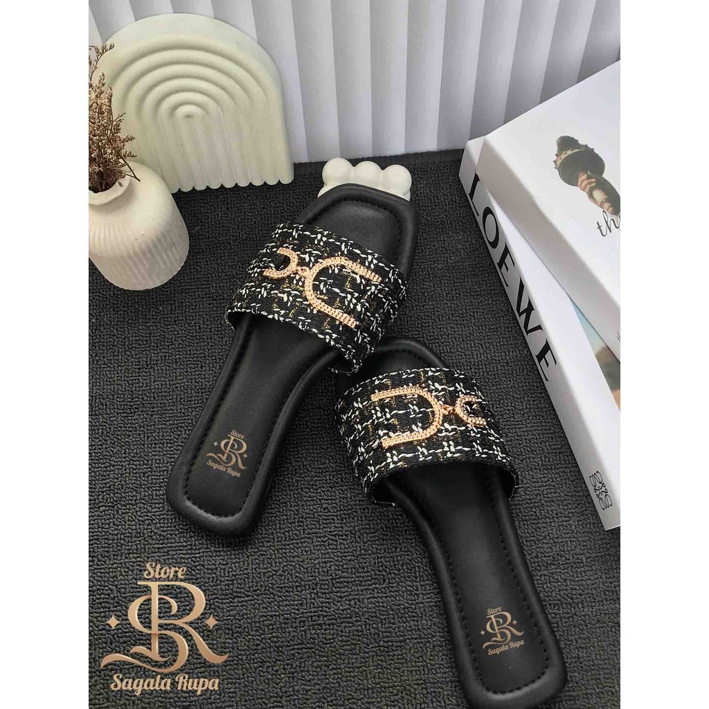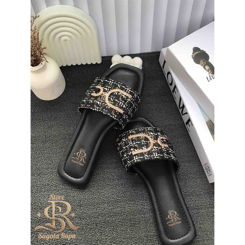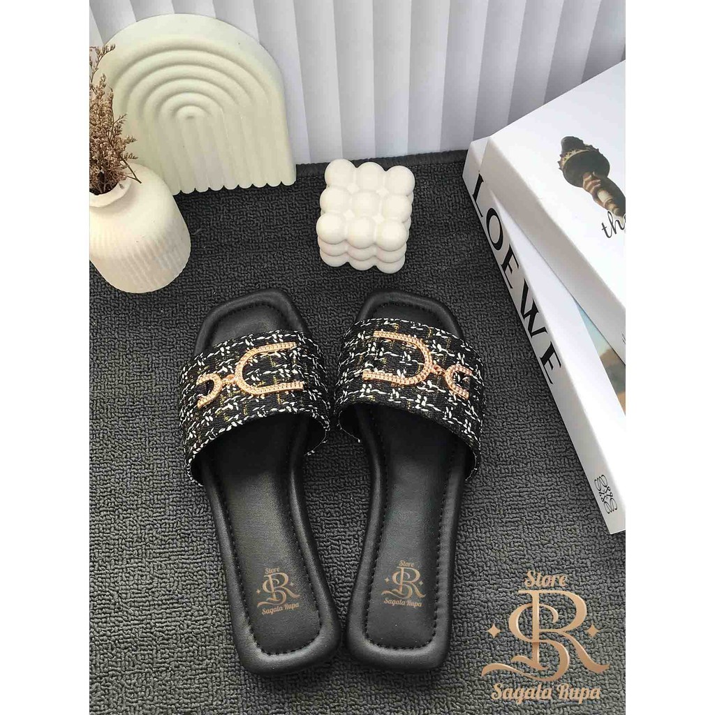 Sandal Slop Flat Wanita Rajut Sendal Teplek Selop Slip On Kokop Cewek Donna Slim Casual Kekinian Sagalarupastore