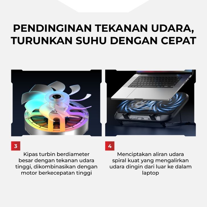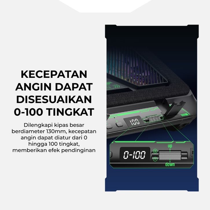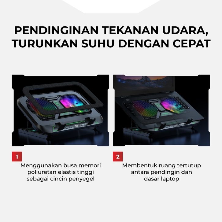 GAMEN Cooling Pad Laptop Gaming Dual Kipas Turbo RGB GCP300 100 Level Fan Speed Phone Holder Silent Fan Original