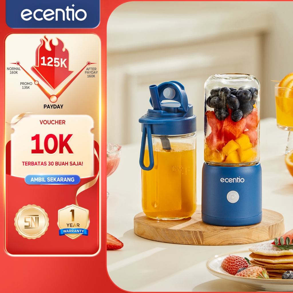 ecentio Juicer Portable Mini Blender MPASI Portable 2 Kaca Gelas Food Grade Tahan Pecah 380ml+380ml 10 Pisau Stainless