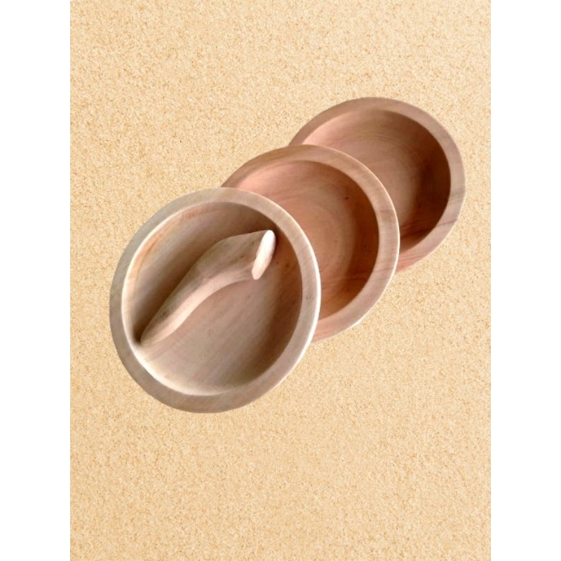 Cobek Kayu Ulekan Plus Gagang Kayu Tradisional