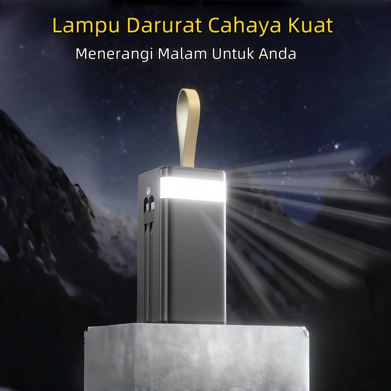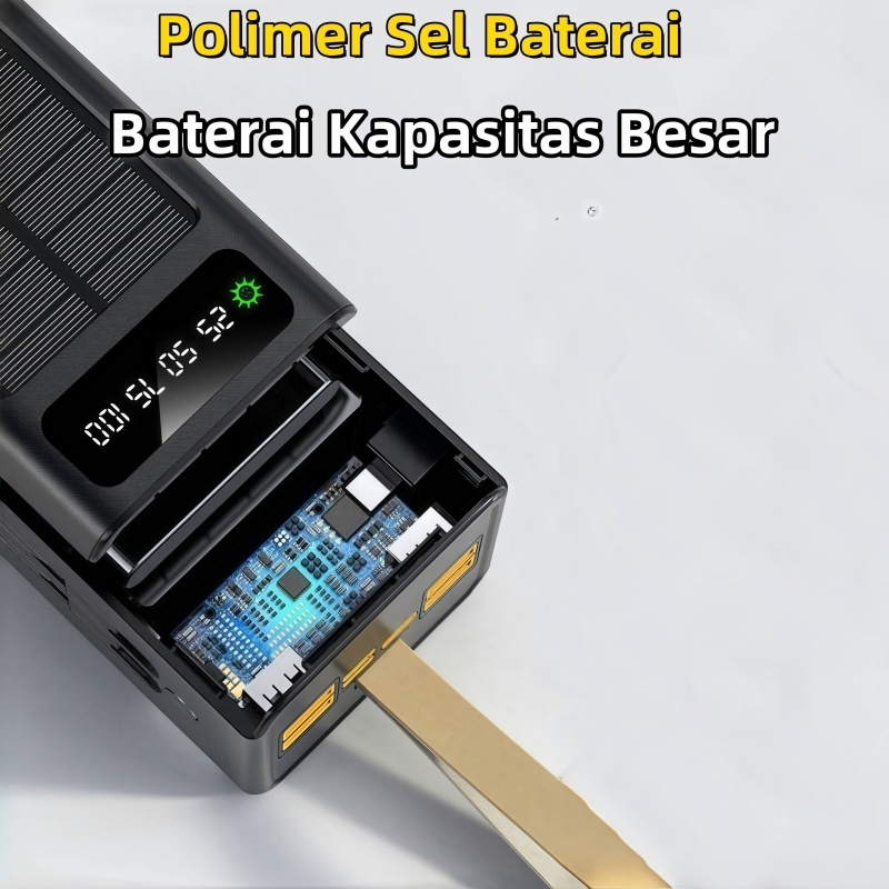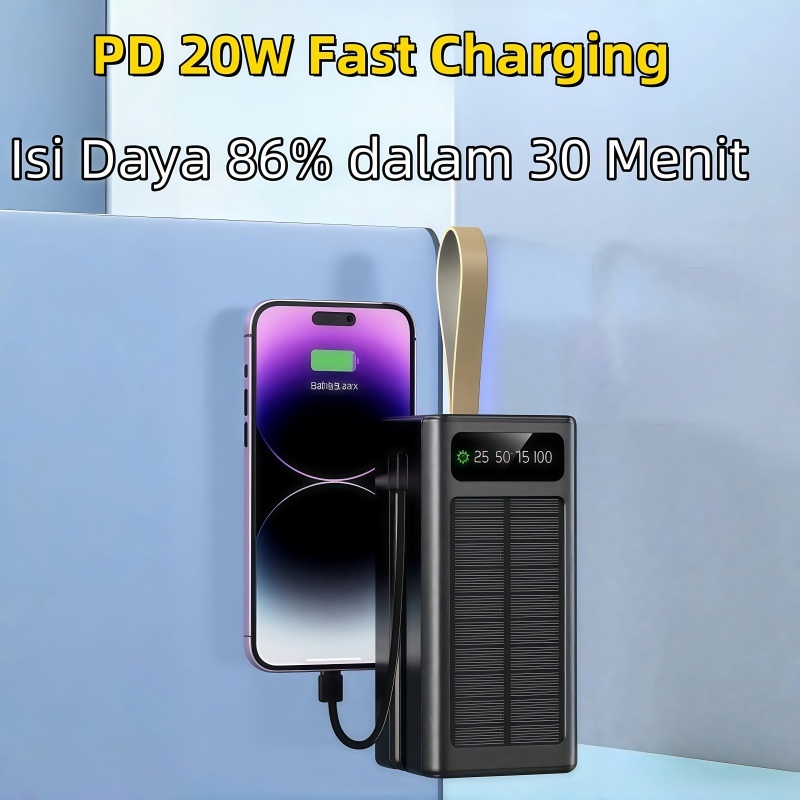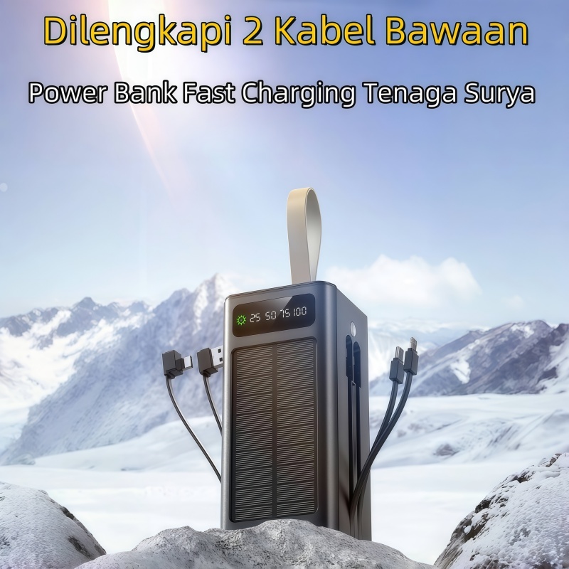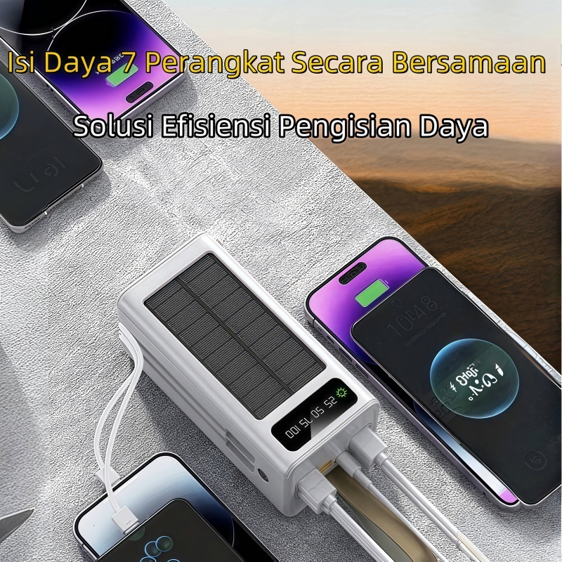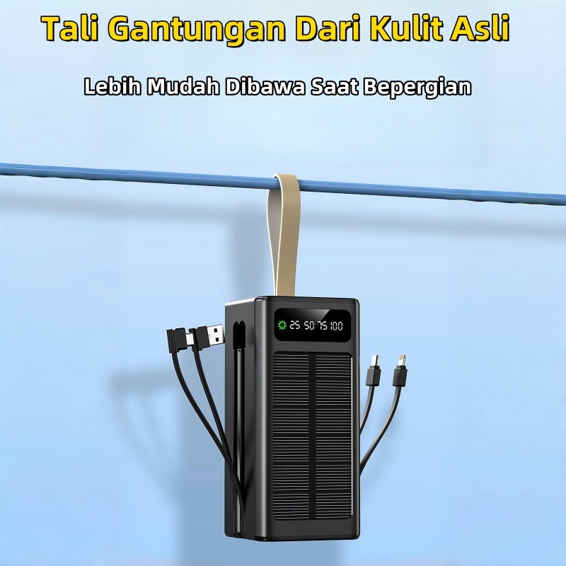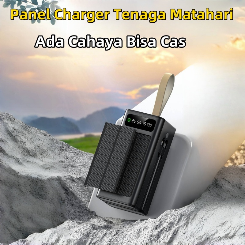 Power Bank 100000mAh Fast Charging Solar - 4 Port USB & 2 Kabel Pengisian Otomatis, Senter LED Super Terang, Bisa untuk Camping & Outdoor