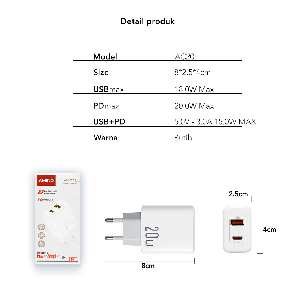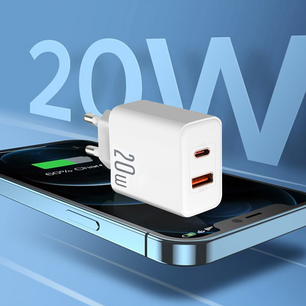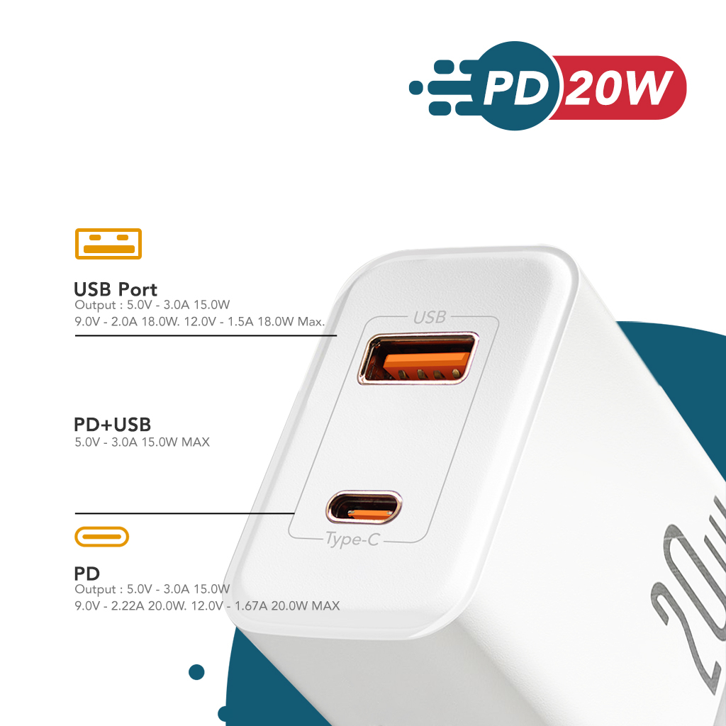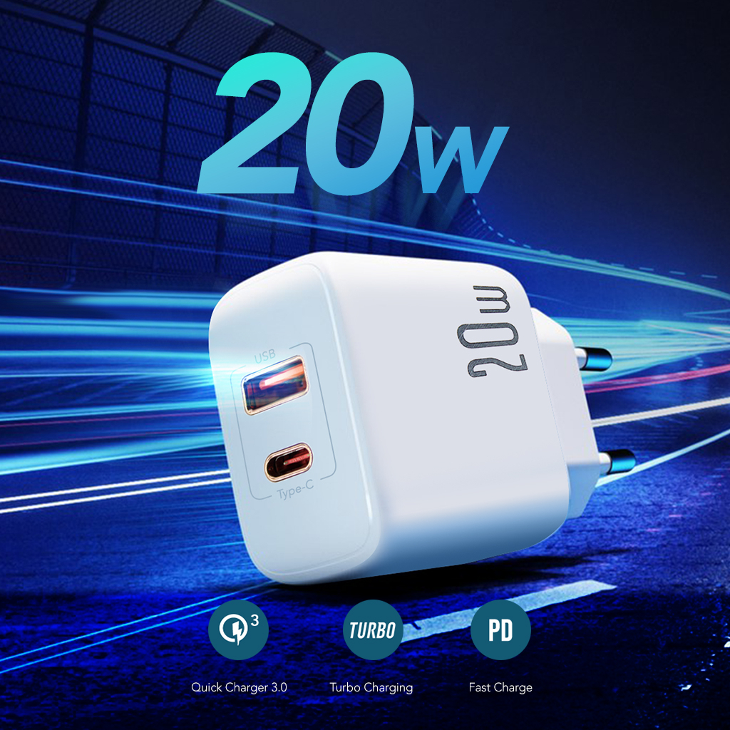 Charger Kepala 20W PD 3.0 Fast Charging – USB Type-C & USB Ganda, Turbo Cepat & Aman untuk Semua HP
