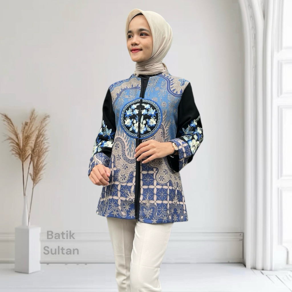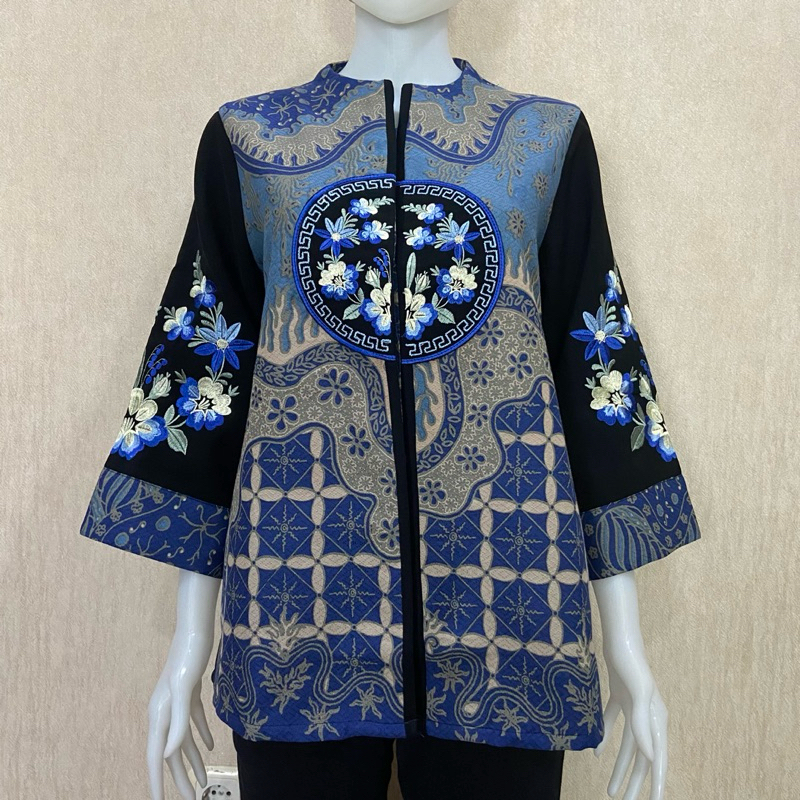 Atasan Batik Blouse Wanita Bordiran Premium Kain Katun Doby Elegan l Batik Cewe Mewah Kantor Kondangan Terkini Kain Doby Exclusive Full Furing Lapisan Tricot Waffle