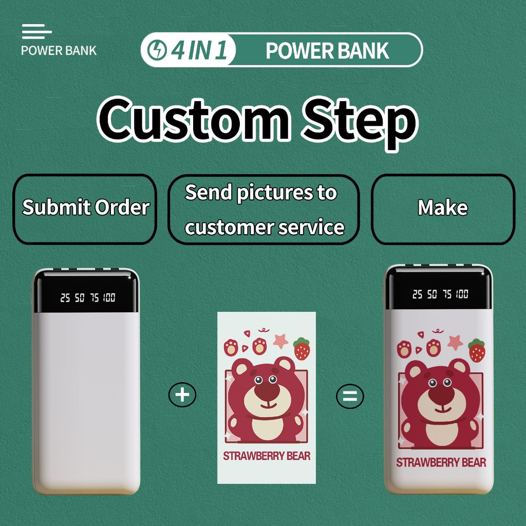 SUTU Custom Powerbank 20000 mah Fast Charging Lucu Gaya kartun Gambar Kustom UV Mini with Kabel bawaan Type C Micro USB IOS Semua kompatibel