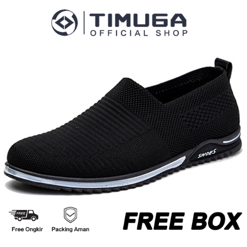 TIMUGA Sepatu Slip On Pria Hitam Sepatu Slop Kerja Jalan Olahraga Sepatu Casual Pria Tanpa Tali MR134