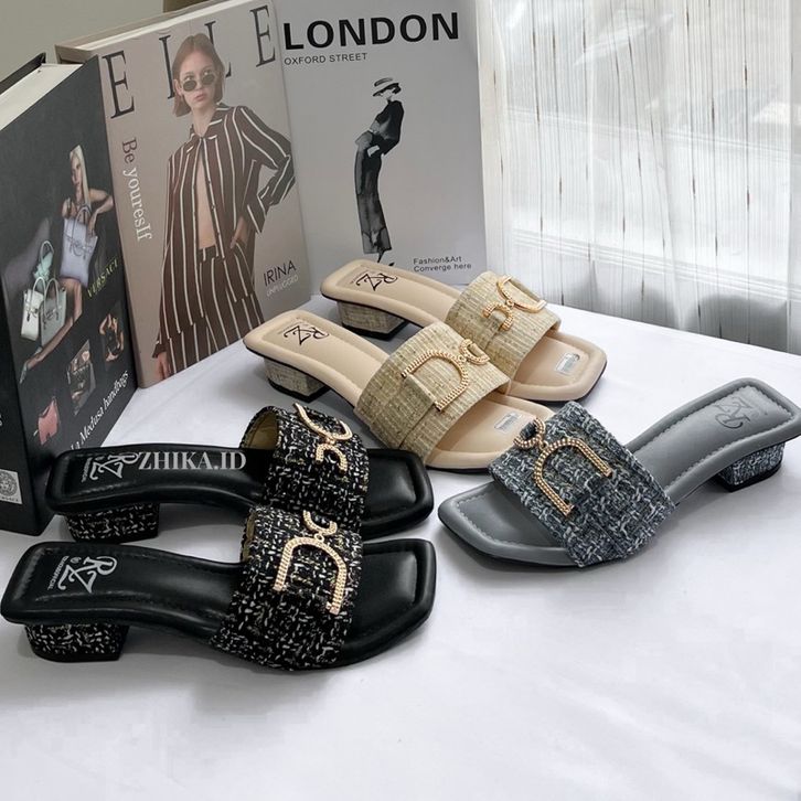 Nimue Sandal Wanita Heels 3cm Sendal Cewek Bahan Tweed Lucu Korean Style-NIMUE