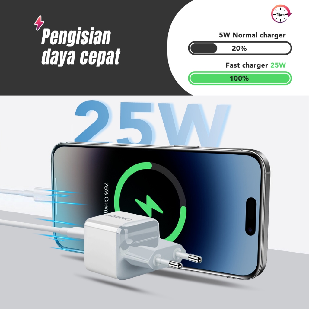 Charger Kepala 25W PD USB Type C Fast Charging 3.0 – Dual Output Quick Charger Super Cepat & Aman