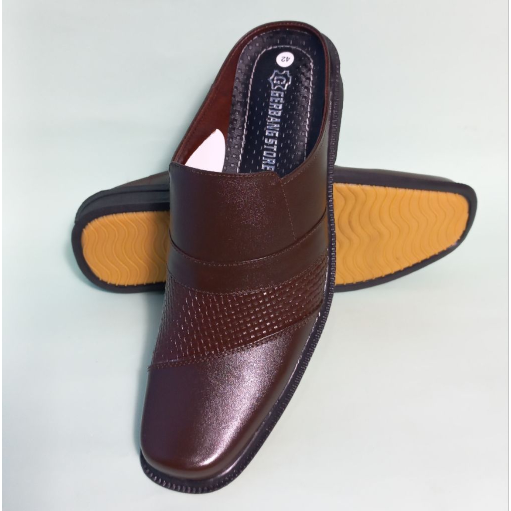Sepatu Sandal Slop Pantofel Formal Kulit Asli Sapi Kantor Dinas Resmi Pesta Big Size 38-45 (IW 2)