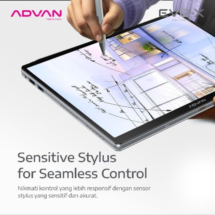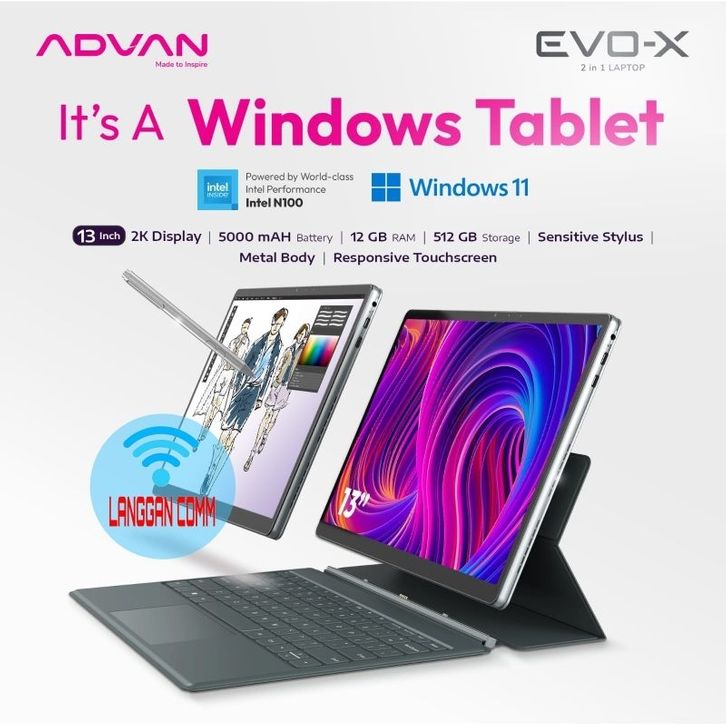 Advan Evo-X 13 Laptop 2 In 1 Tablet Windows Processor Intel N100 Ram 12GB Storage 512GB Windows 11