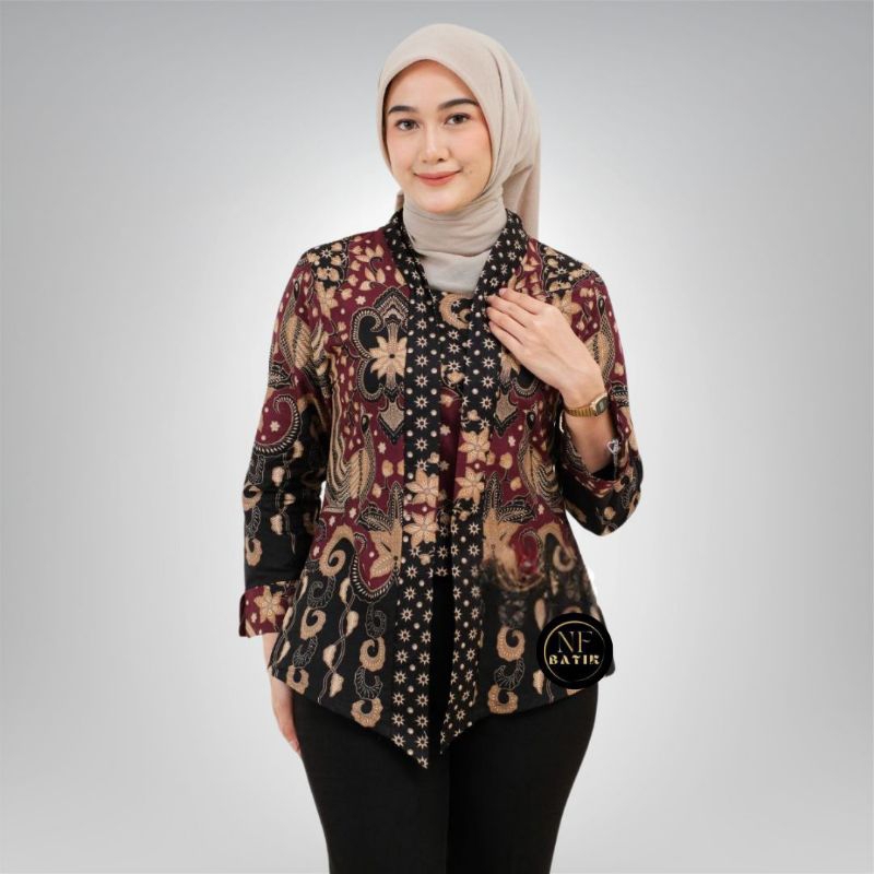 tey-17 Batik Wanita ASJ SA HRBO26 Kenongo Kemeja Tosca Pendek