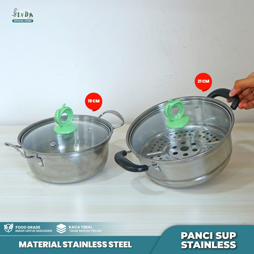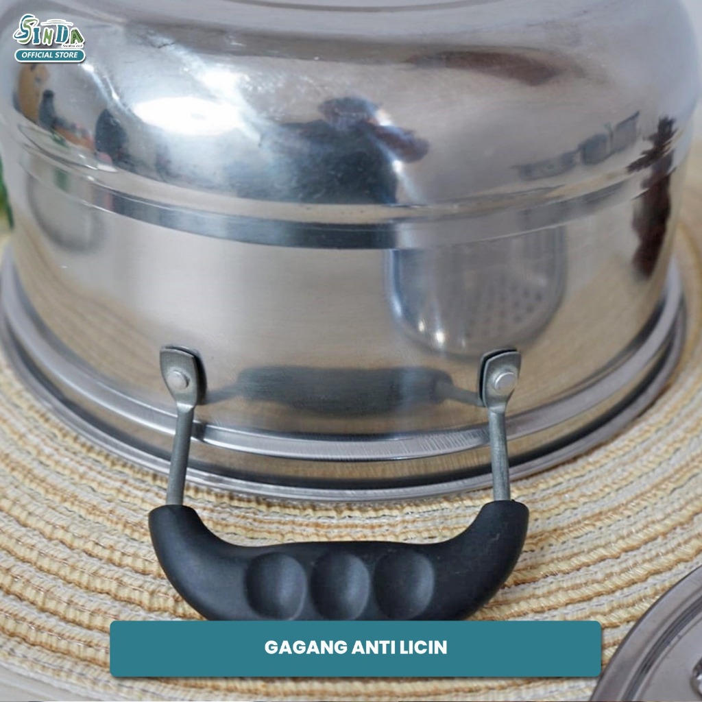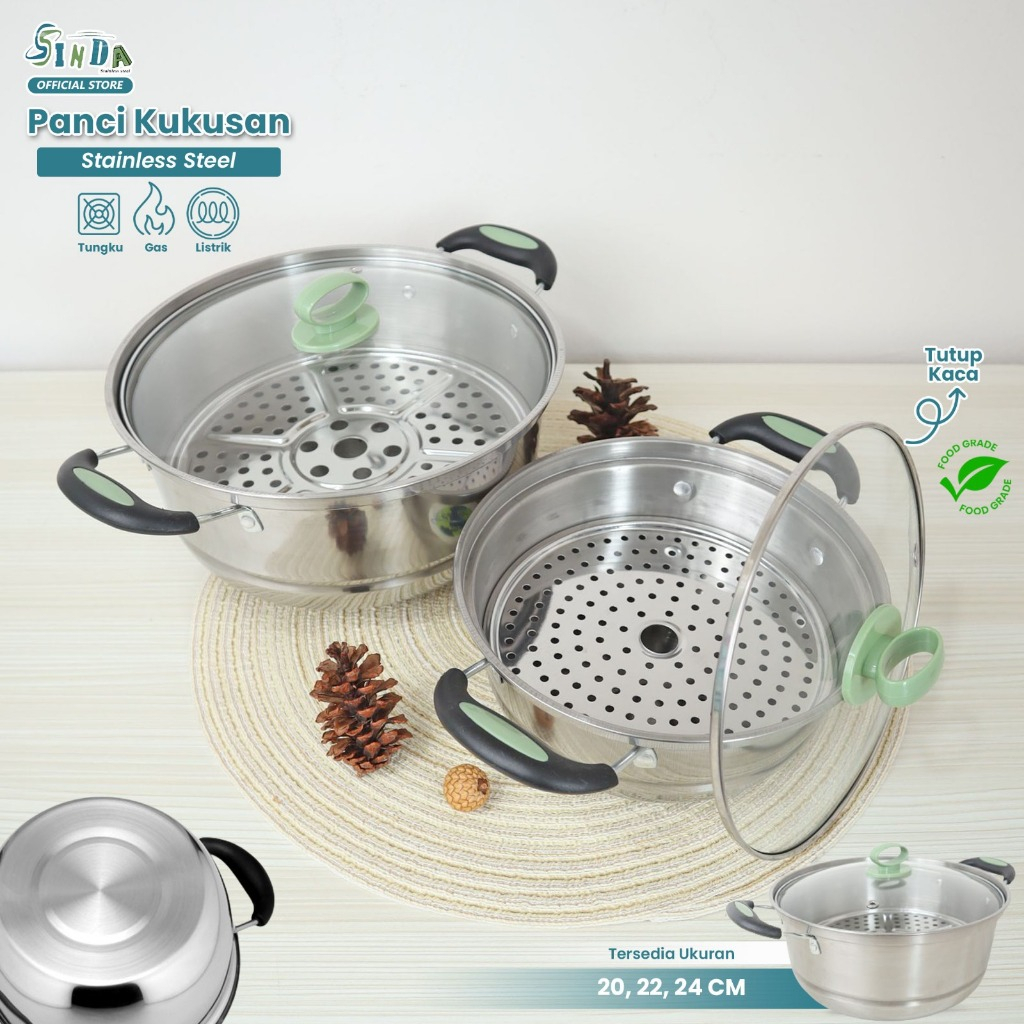 SINDA Panci Pengukus Stainless Steel – 3 Pilihan Ukuran (20, 22, 24cm) + Kukusan Aluminium Gratis