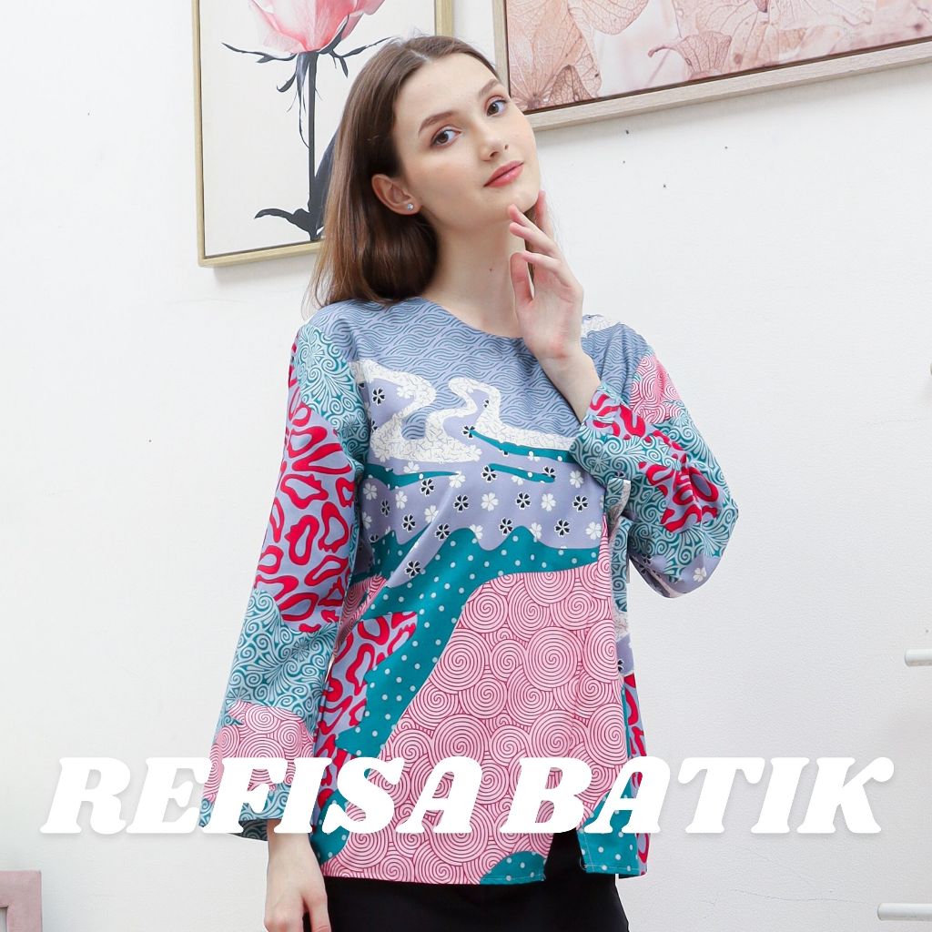 Refisa Batik atasan Baju Batik Wanita Lengan Panjang M L XL XXL