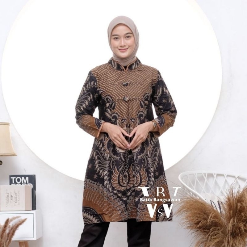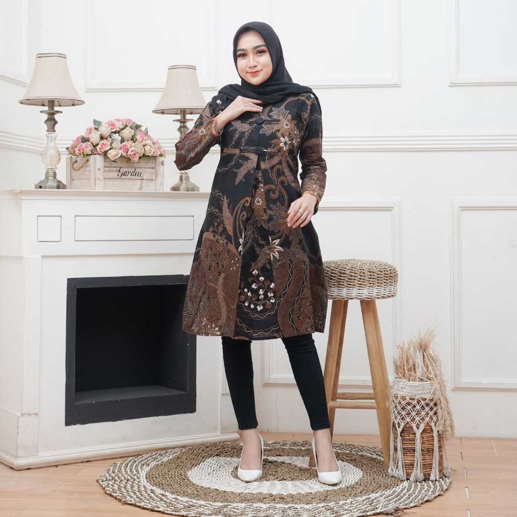 Tunik Batik Wanita Modern Terbaru JUMBO M L XL XXL XXXL Atasan Batik Wanita Seragam Murah