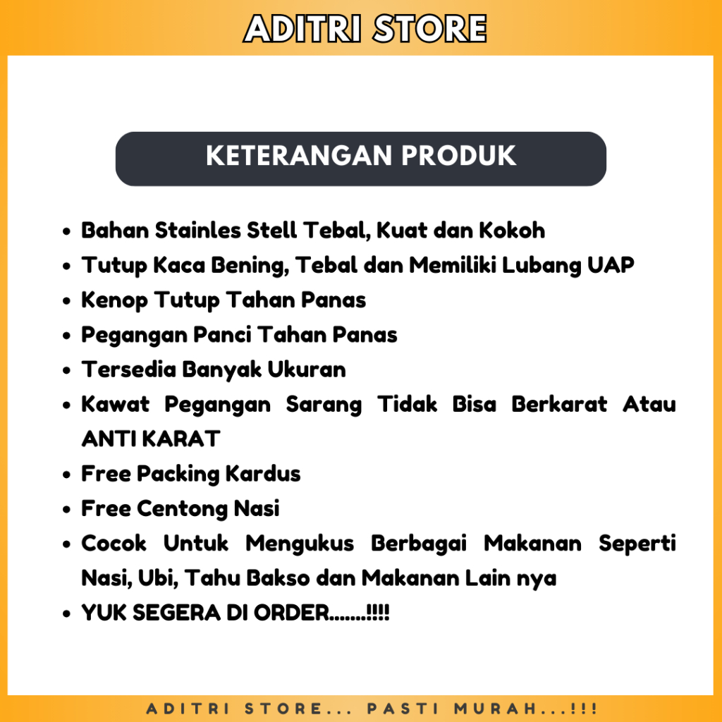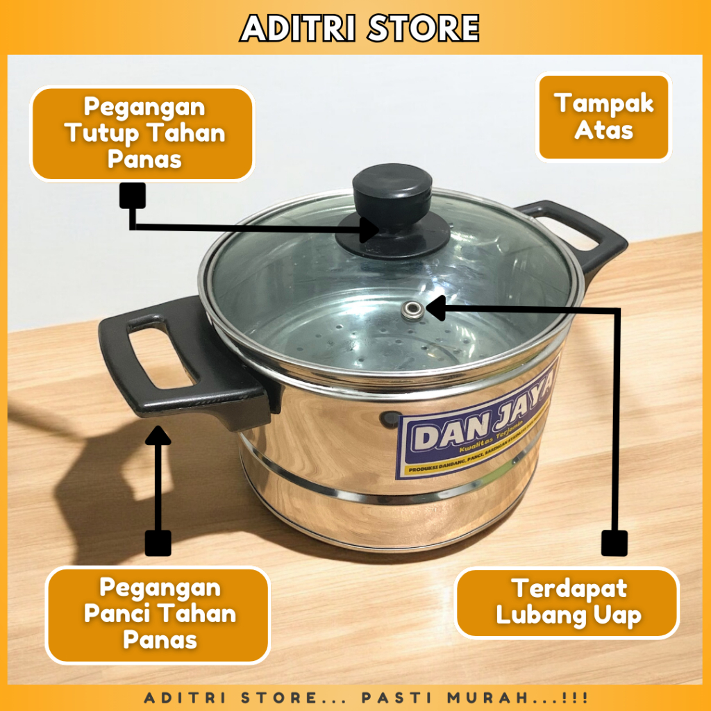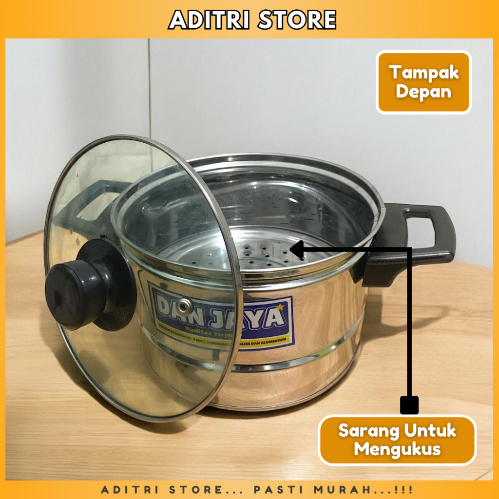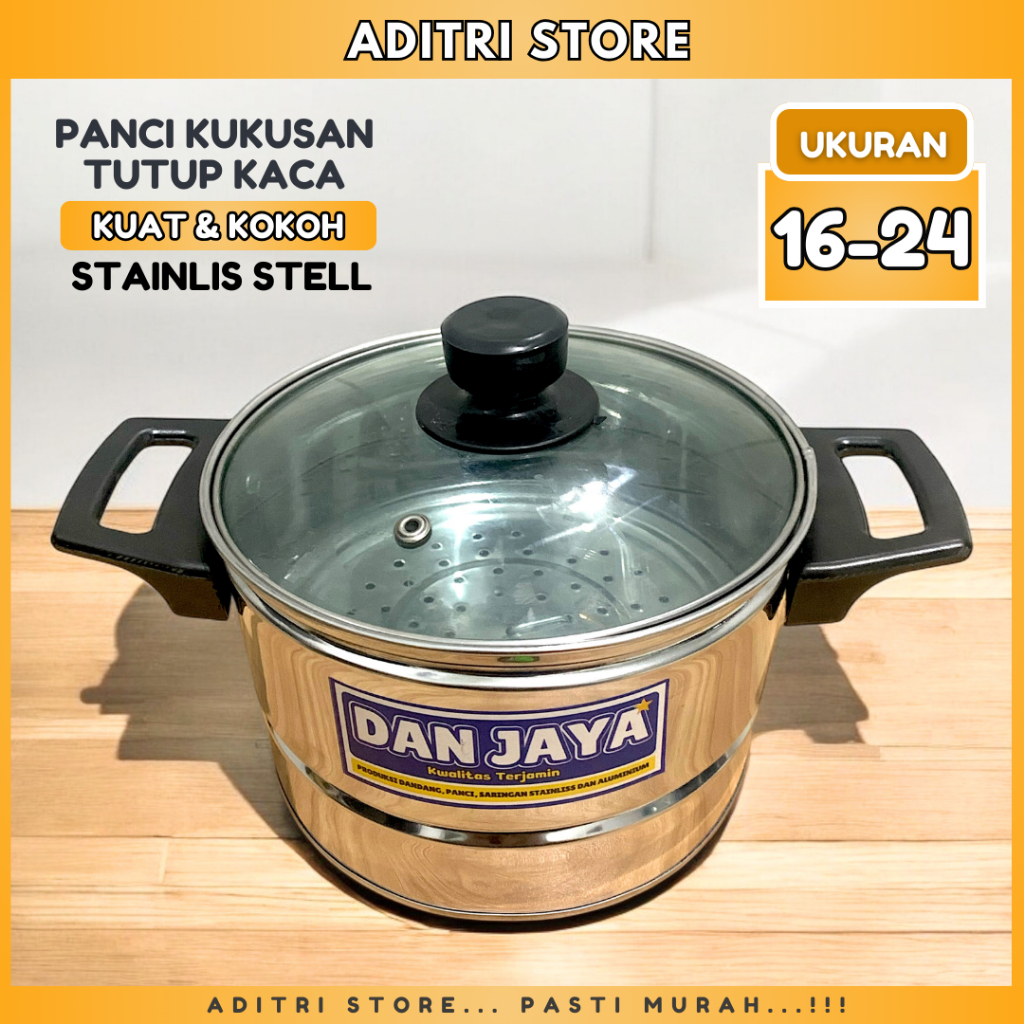 [ADITRI STORE] Panci Dandang Kukusan Nasi Serbaguna Tutup Kaca DanJaya Stainlis Stell UK. 16 - 24 Free Centong | Panci Serbaguna 2IN1