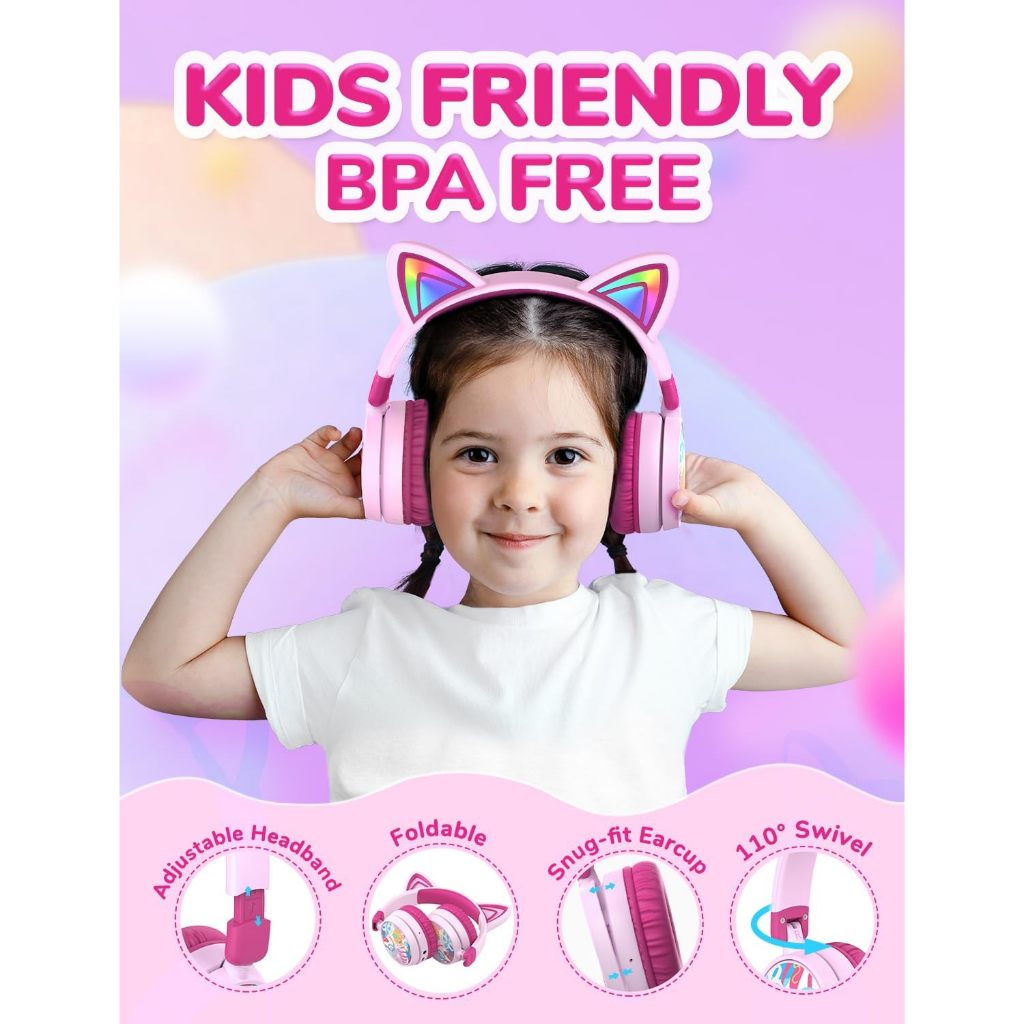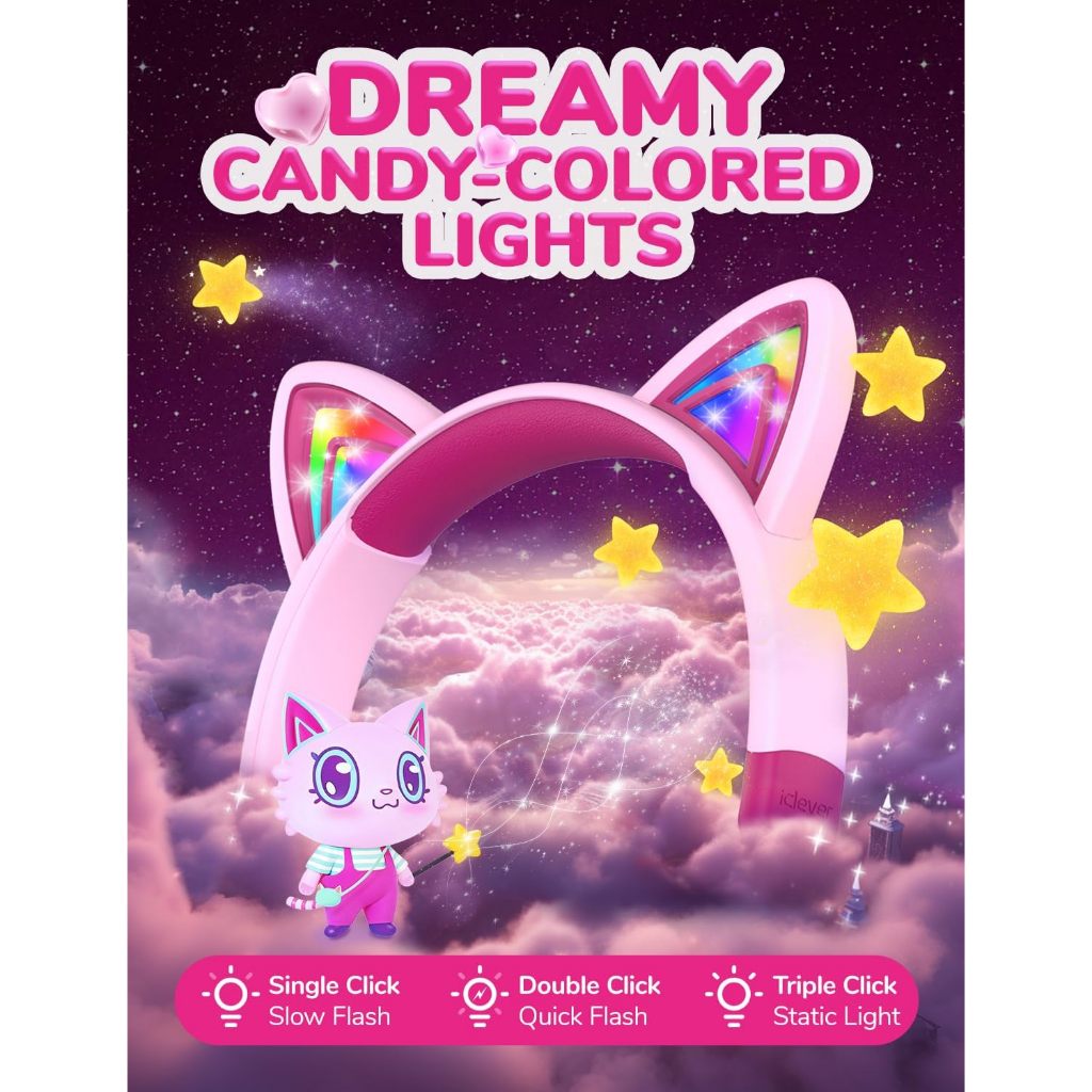 iClever BTH21 Kids Headphone Anak Bluetooth Telinga Kucing LED