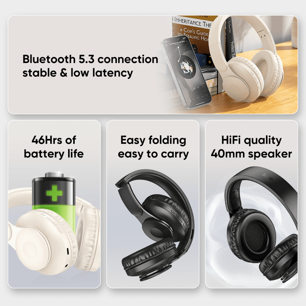 Hoco Headphone Bluetooth 5.3 Wireless Over-Ear Headset Earphone Hifi 46h Playtime Dan Microphone W45