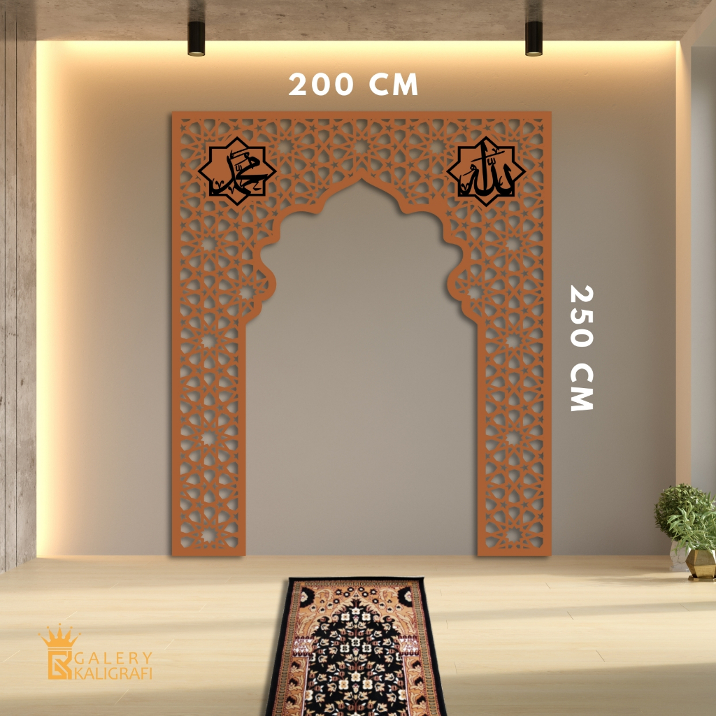 GK01-Galerykaligrafi Mihrab Mushola Hiasan Dinding Kaligrafi Allah Muhammad Polywood