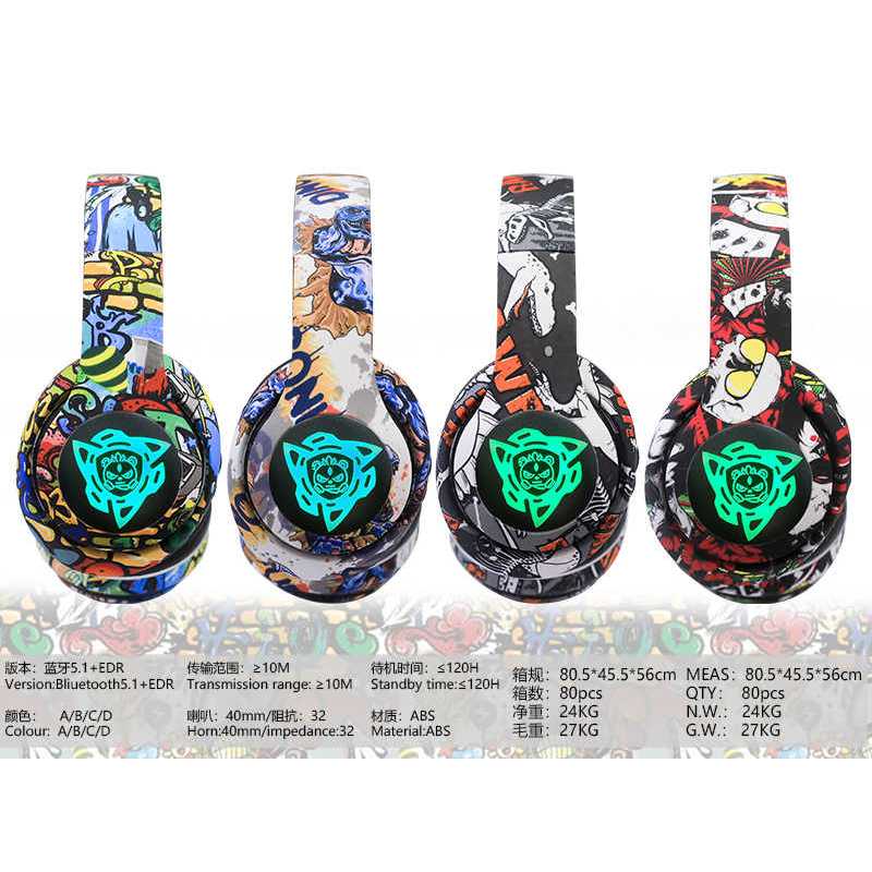 Headphone Bando - Headphone Bluetooth Wireless Graffiti Motif - Headset Music Hifi Stereo Headphones