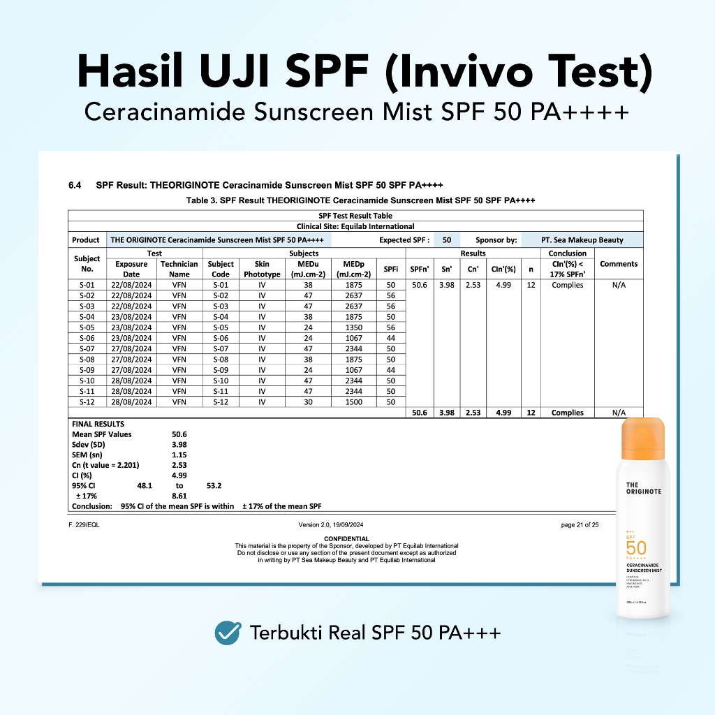 The Originote Cerinamide Sunscreen Mist SPF 50 PA++++ - UV - Melembabkan Wajah No Whitecast Protector Sunscreen Spray Fe