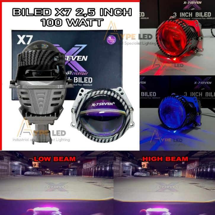 ORIGINAL BILED X-7SEVEN 2,5 INCH PURPLE LENS X7 100WATT PLUS DEMON PAKET HEMAT BALAST EXTERNAL PROJIE BILED MOTOR MOBIL