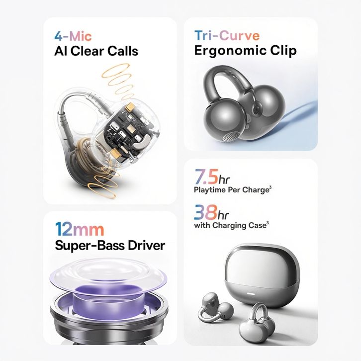 Headset Bluetooth 5.4 True Sports Noise Reduction Ear Clip Bone CP1 TWS Wireless KINYO