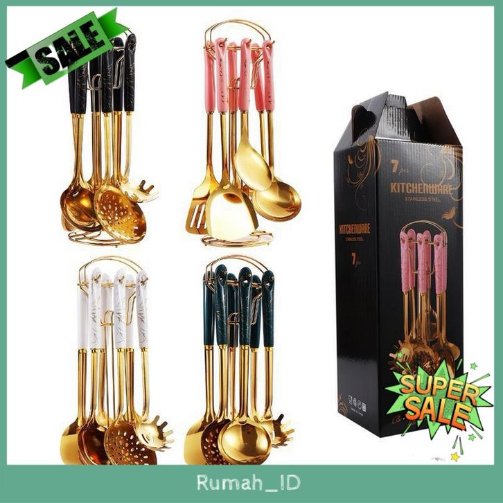 ALAT MASAK SULTAN / SPATULA MASAK SET GOLD JADE SET 7 IN 1 EMAS ELEGANT MEWAH / SPATULA KITCHEN TOOLS / SET ALAT MASAK M