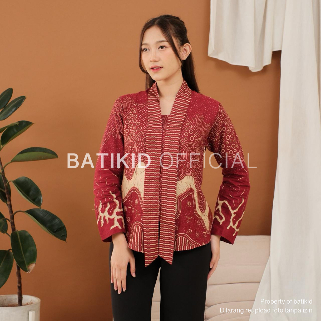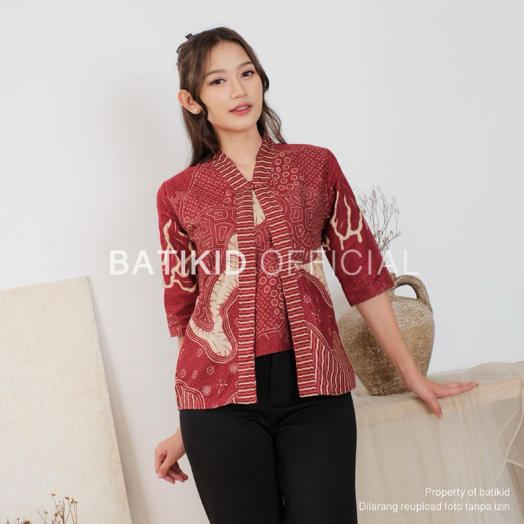 Batikid — Atasan Batik Wanita Lengan 3/4 — Baju Batik Kerja Casual Panjang Bahan Katun Asli — Radix