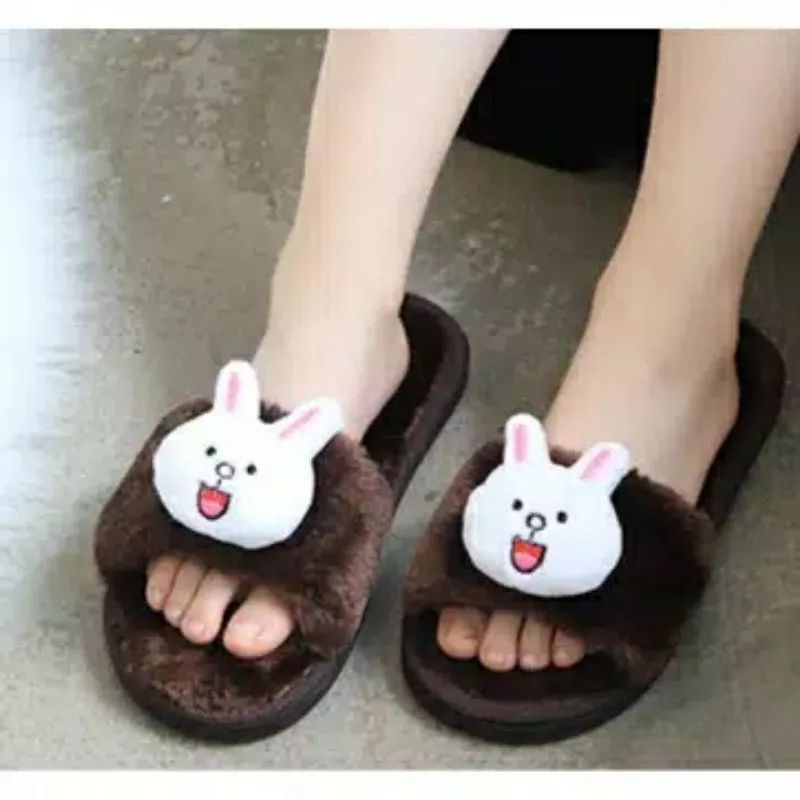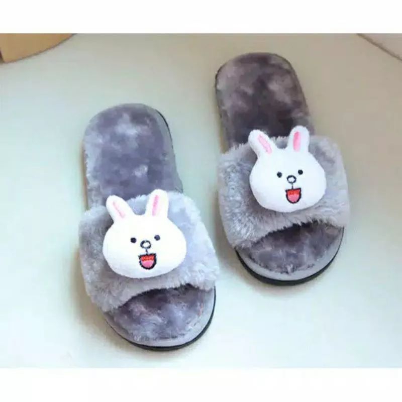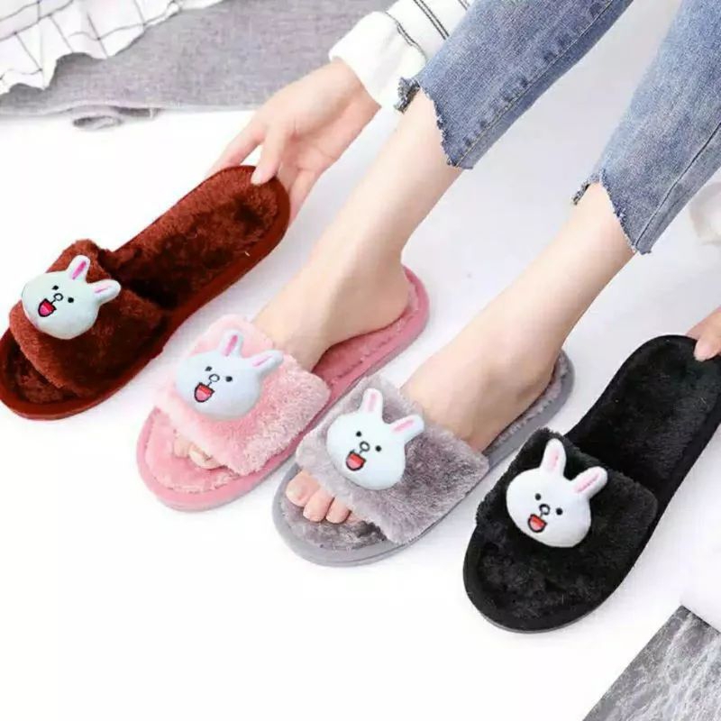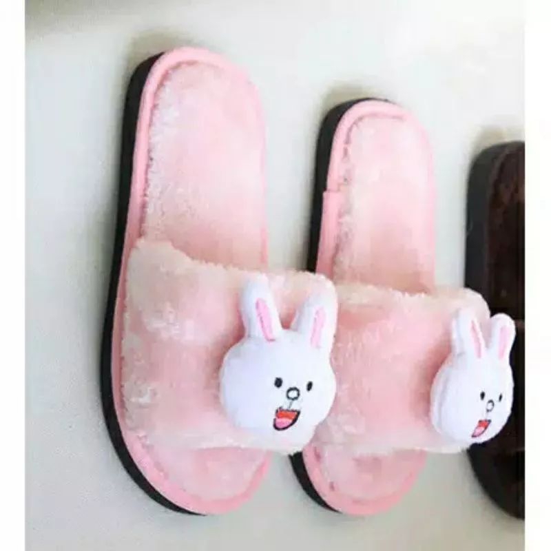 Sandal Bulu Selop Kepala Kelinci Anak Perempuan Size 26 Sampai 35